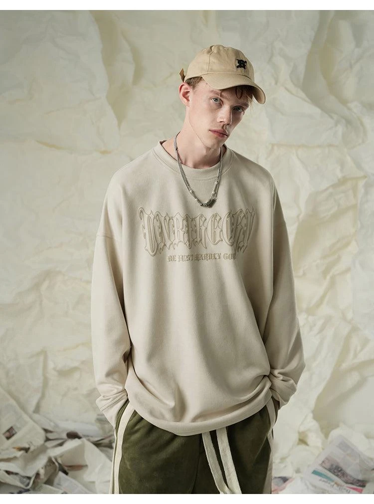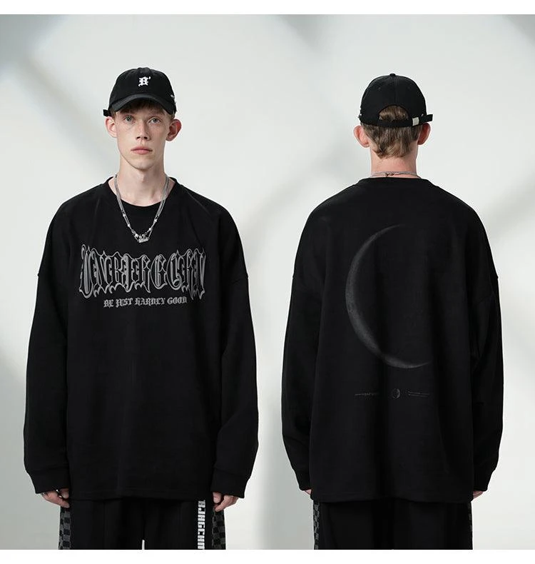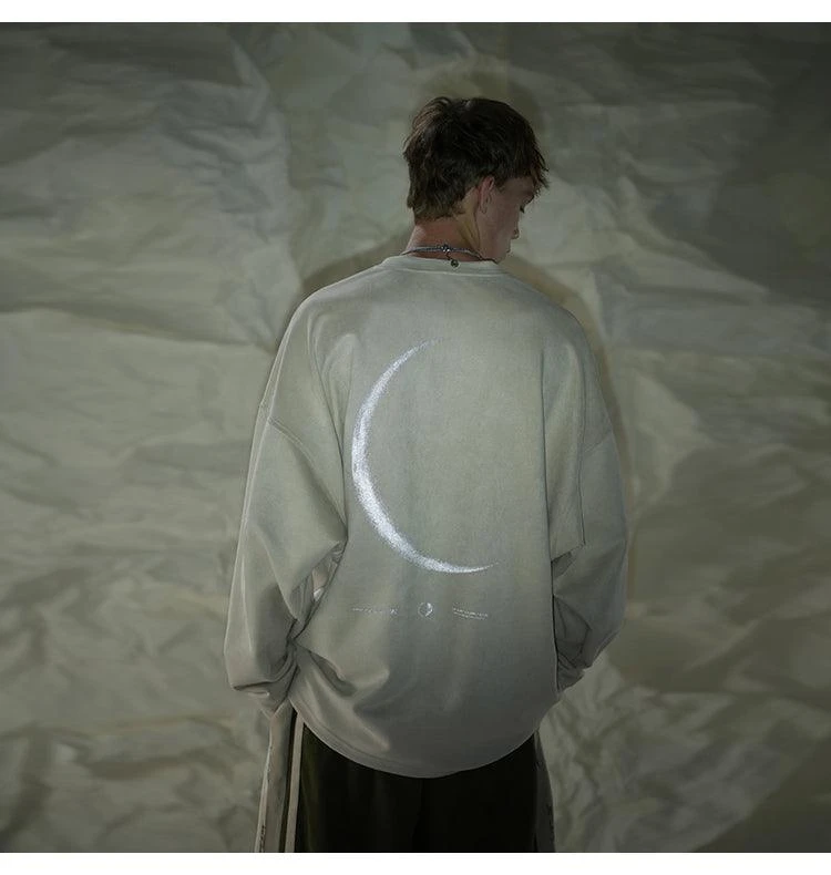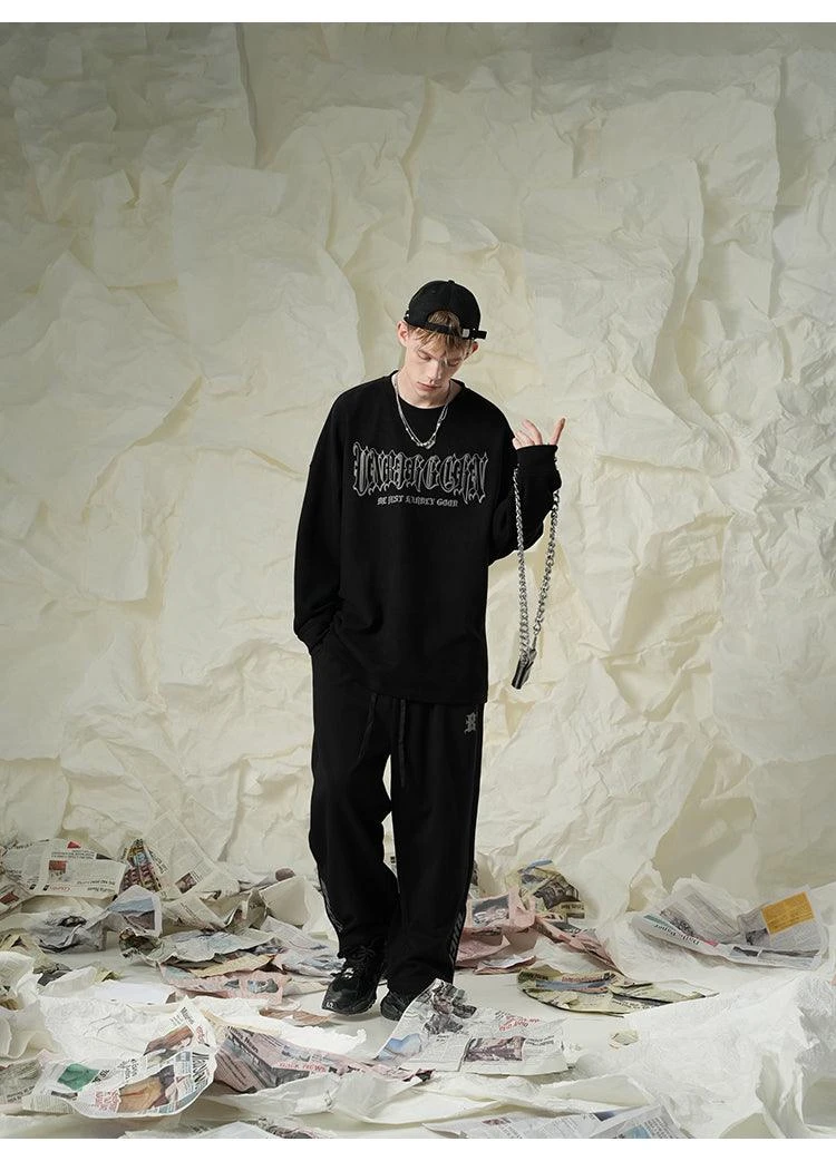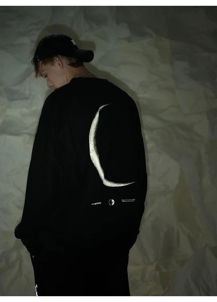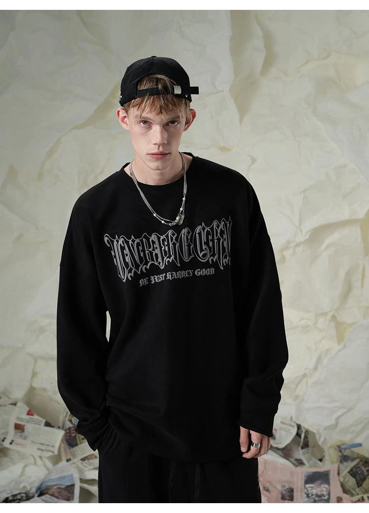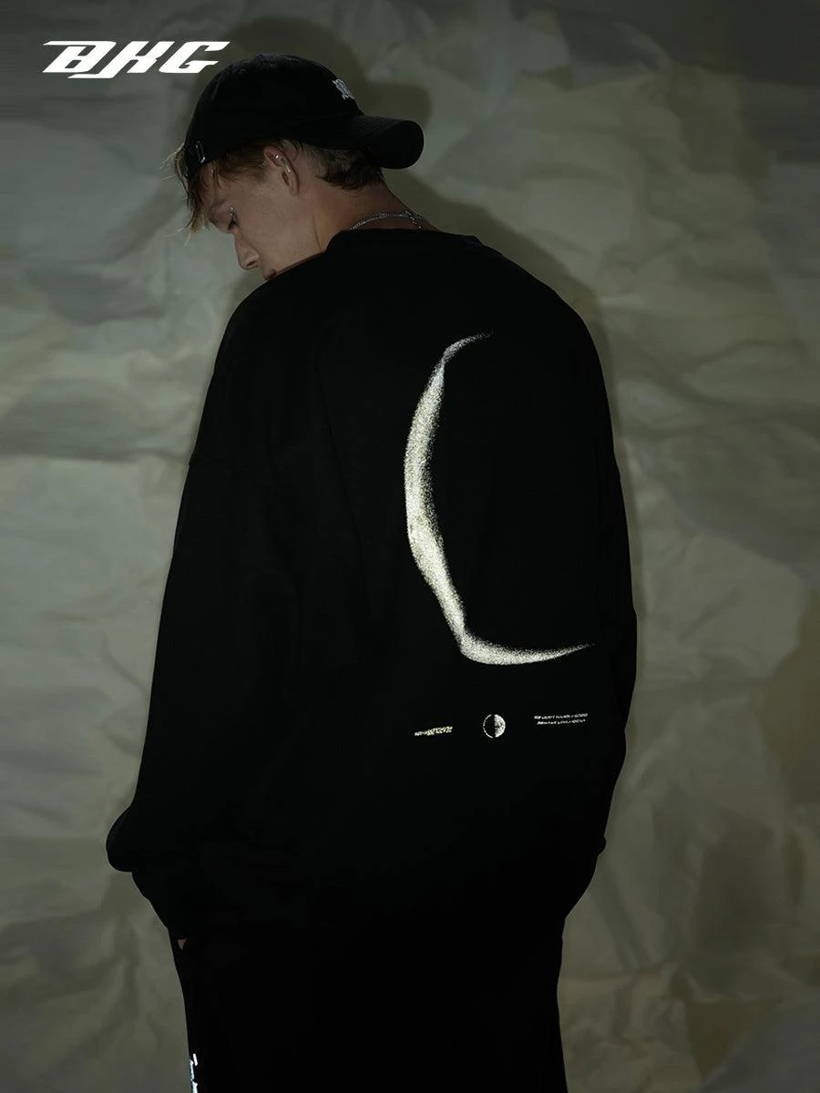 BJHG cotton-blend sweatshirt, rib knit crewneck/cuffs/brim, puff print script at chest, 3M reflective print on back.