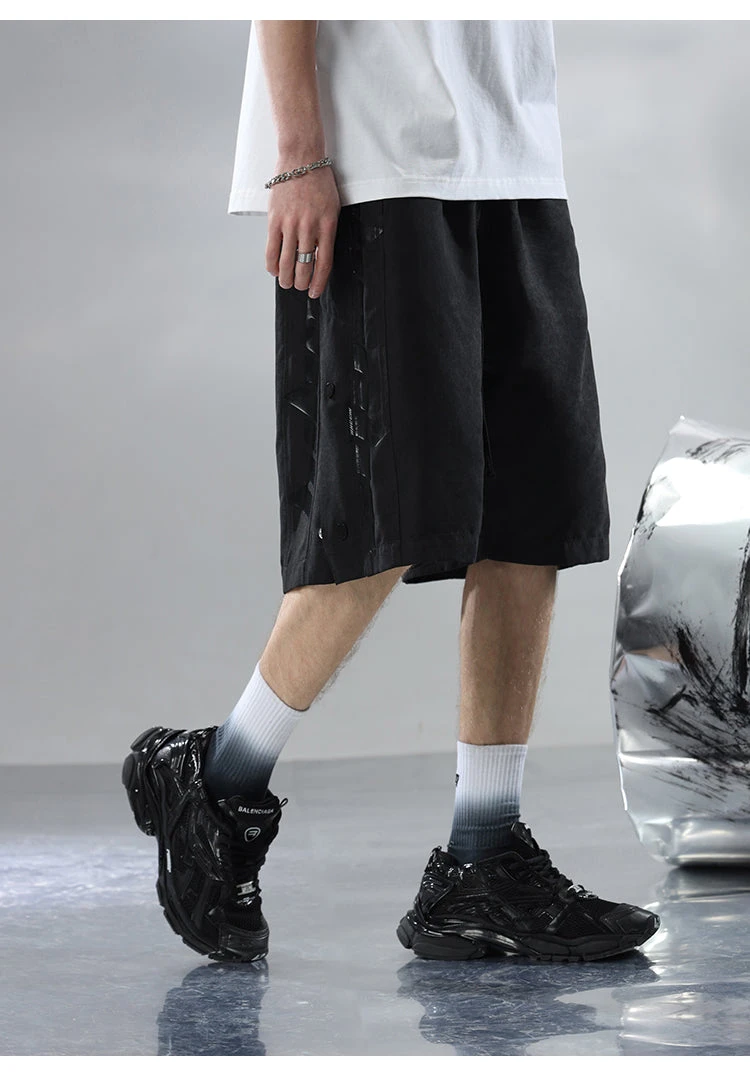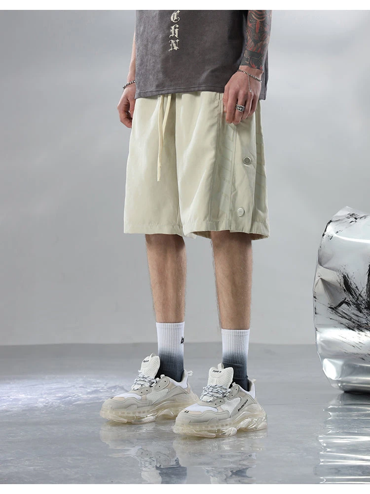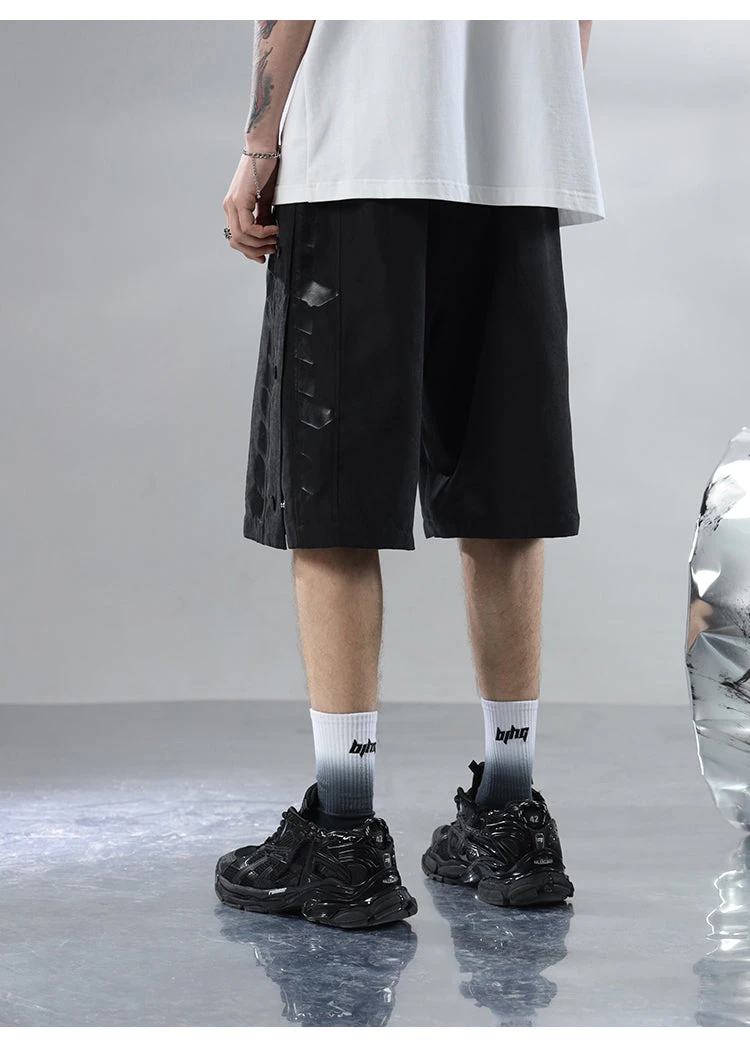 BJHG nylon and polyester-blend shorts, drawstring at elasticized waistband, summary closure, logo embossed at front.