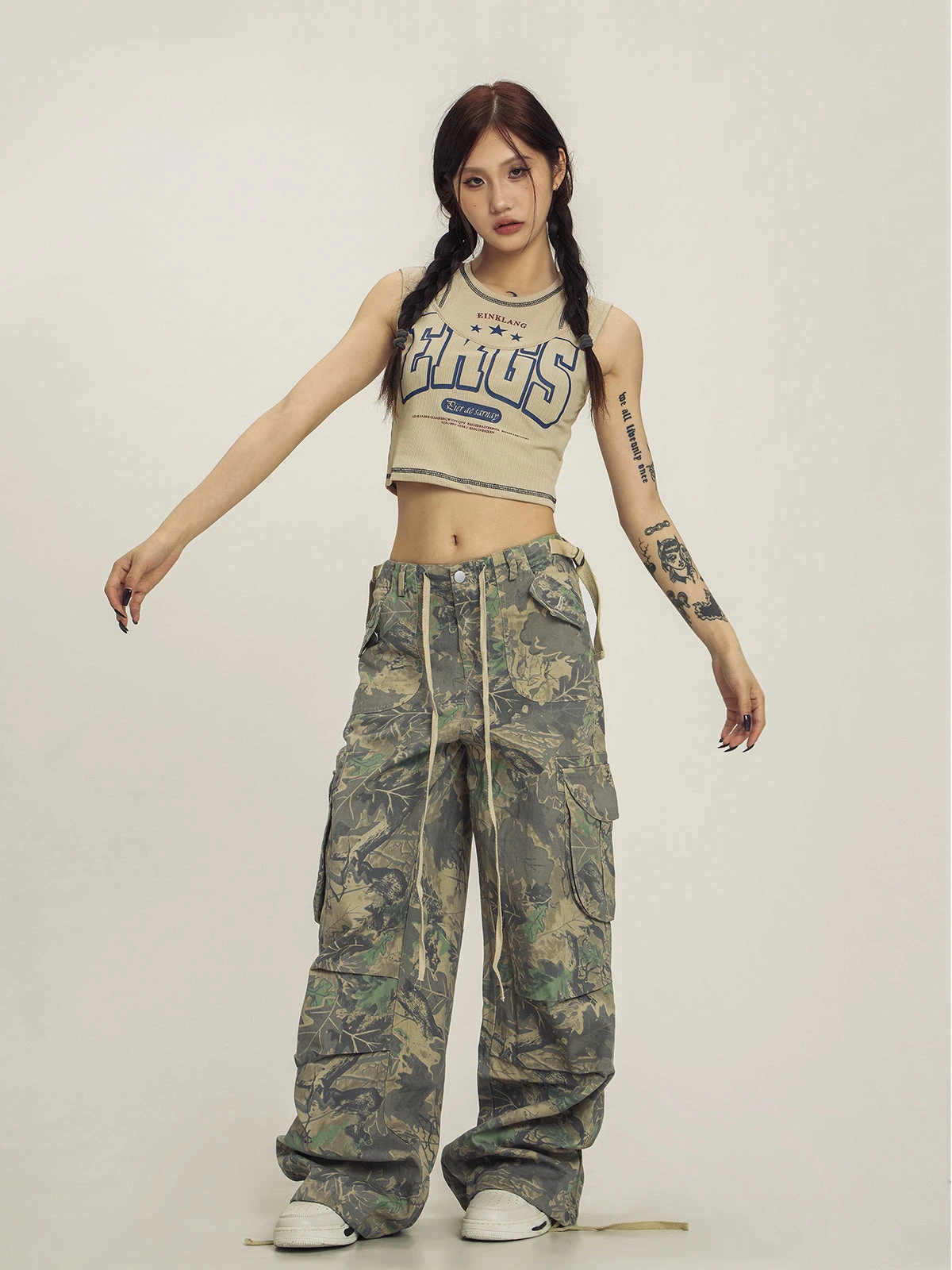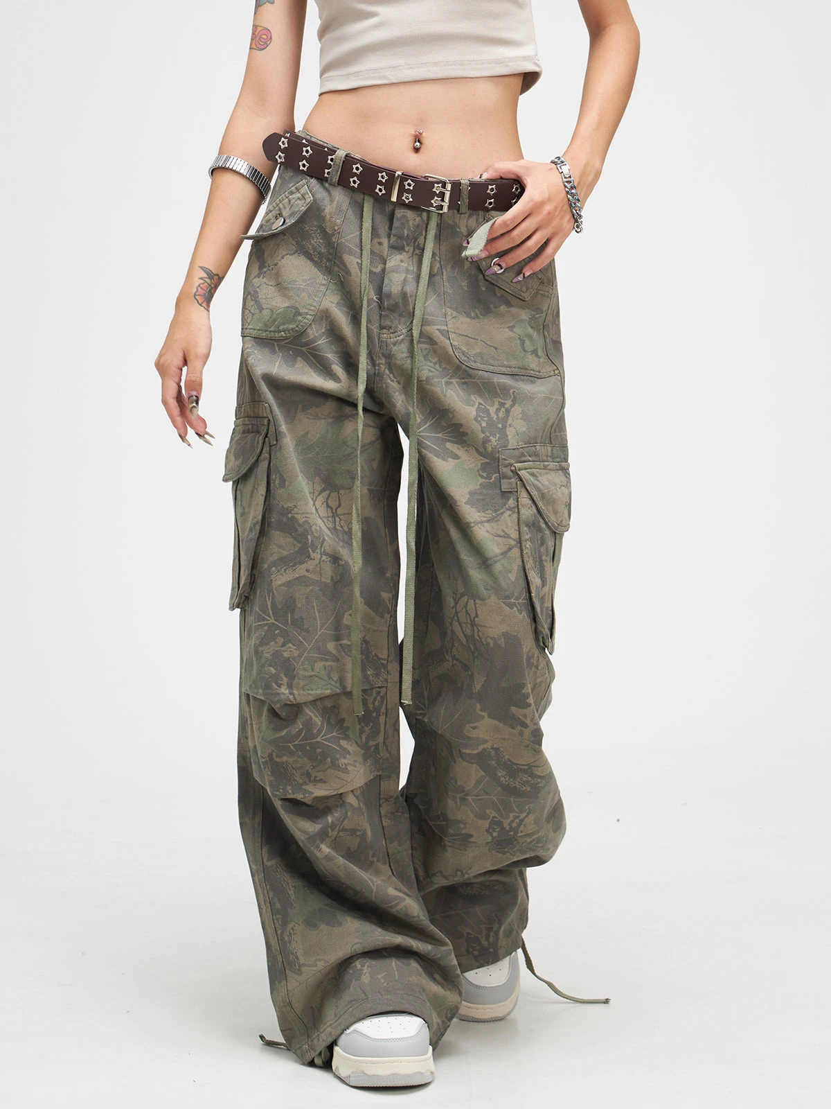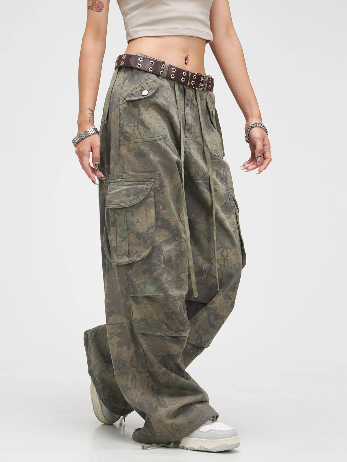 CTB relaxed-fit cotton blend cargo pants, belt loops, four-pocket styling, zip-fly, drawstring at waistband and cuffs, pleats at knees.