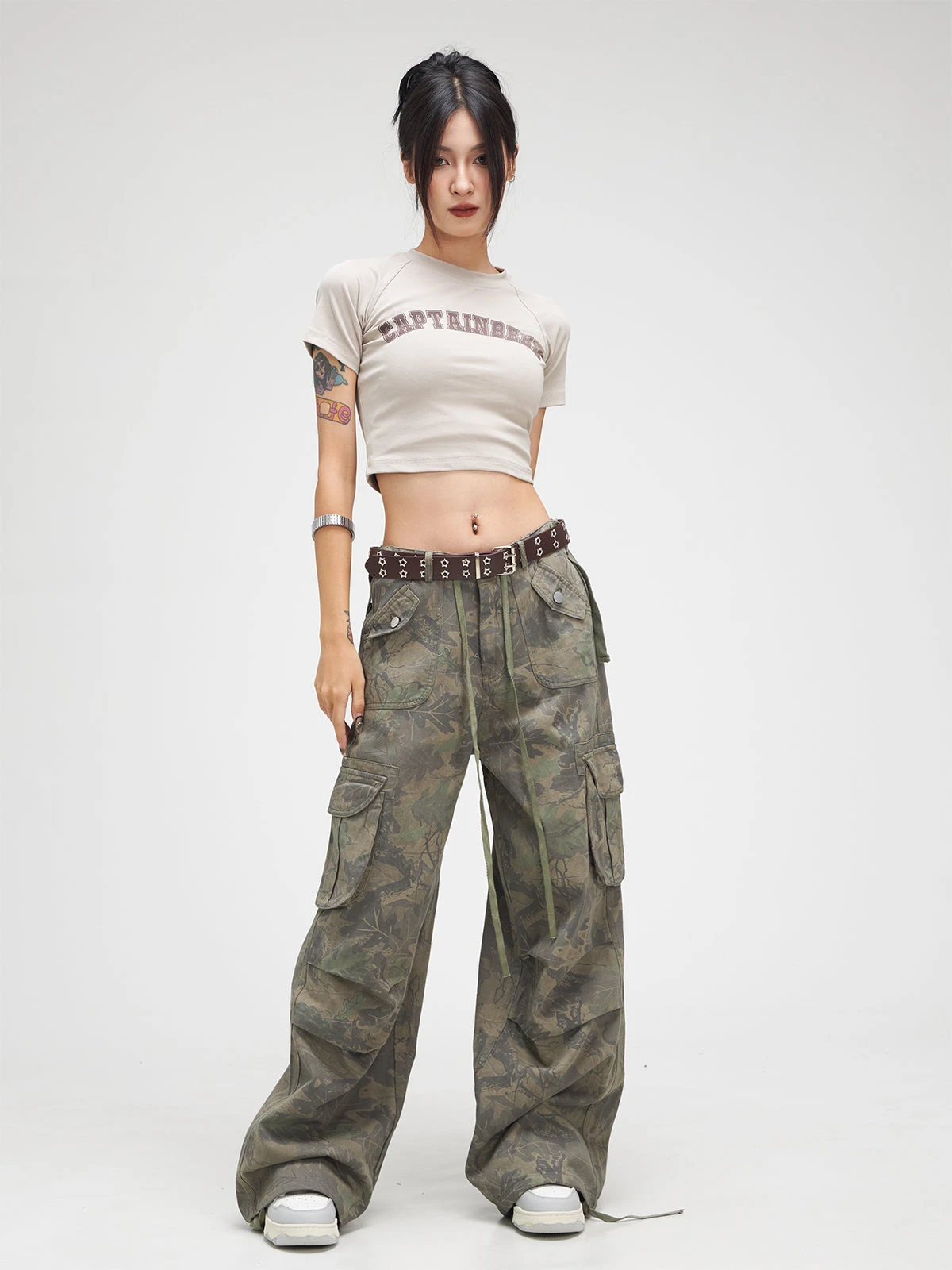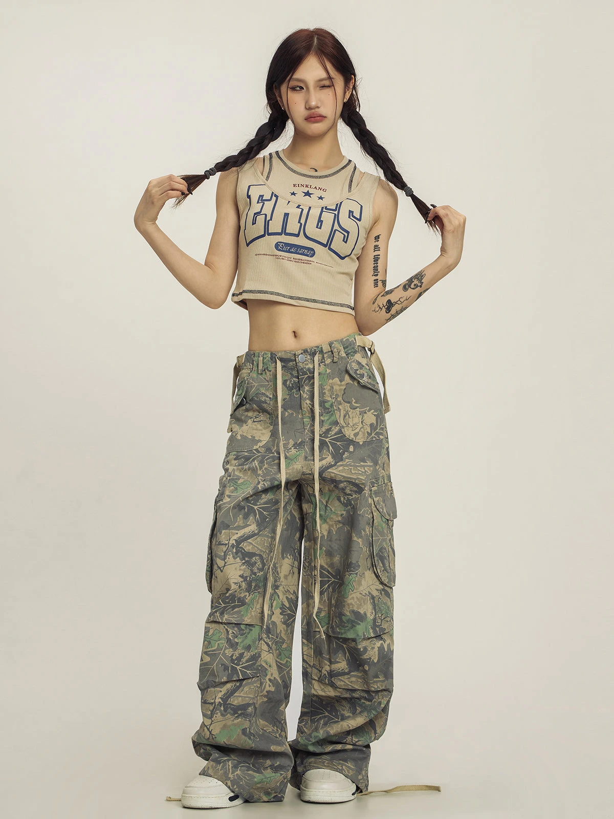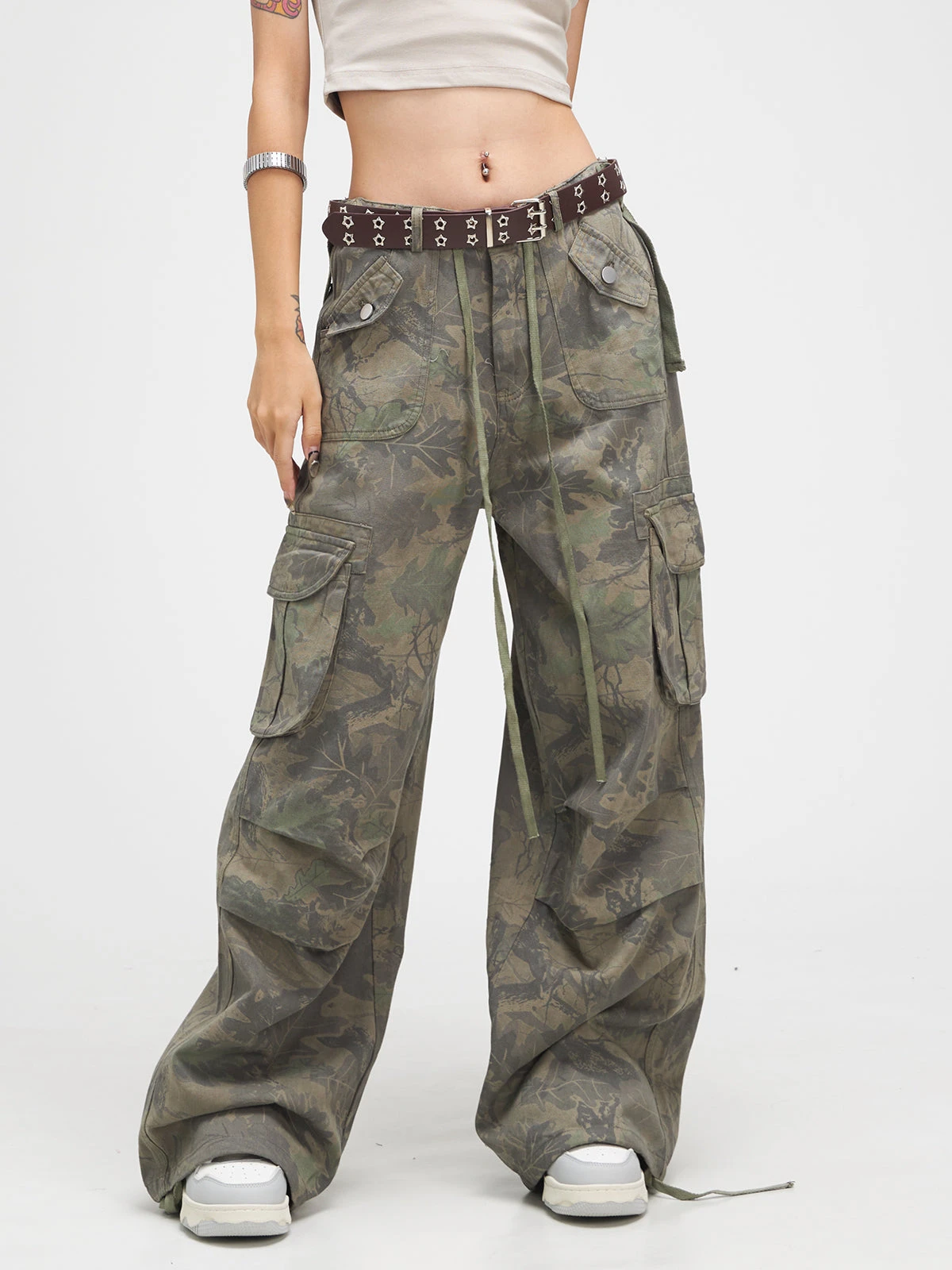 CTB relaxed-fit cotton blend cargo pants, belt loops, four-pocket styling, zip-fly, drawstring at waistband and cuffs, pleats at knees.