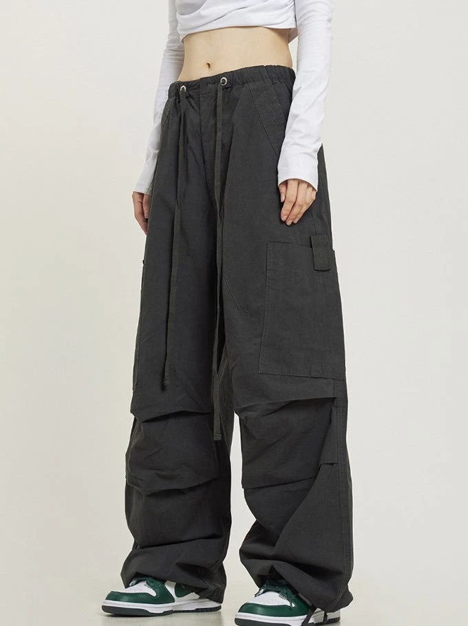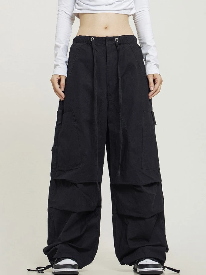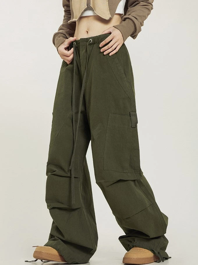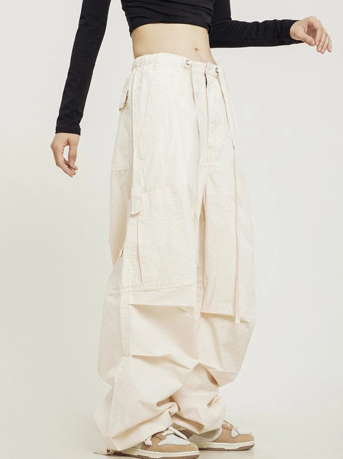 CTB relaxed-fit cotton blend cargo pants, drawstring at hem and elasticized waistband, flap-close pockets at outseams, four-pocket styling.