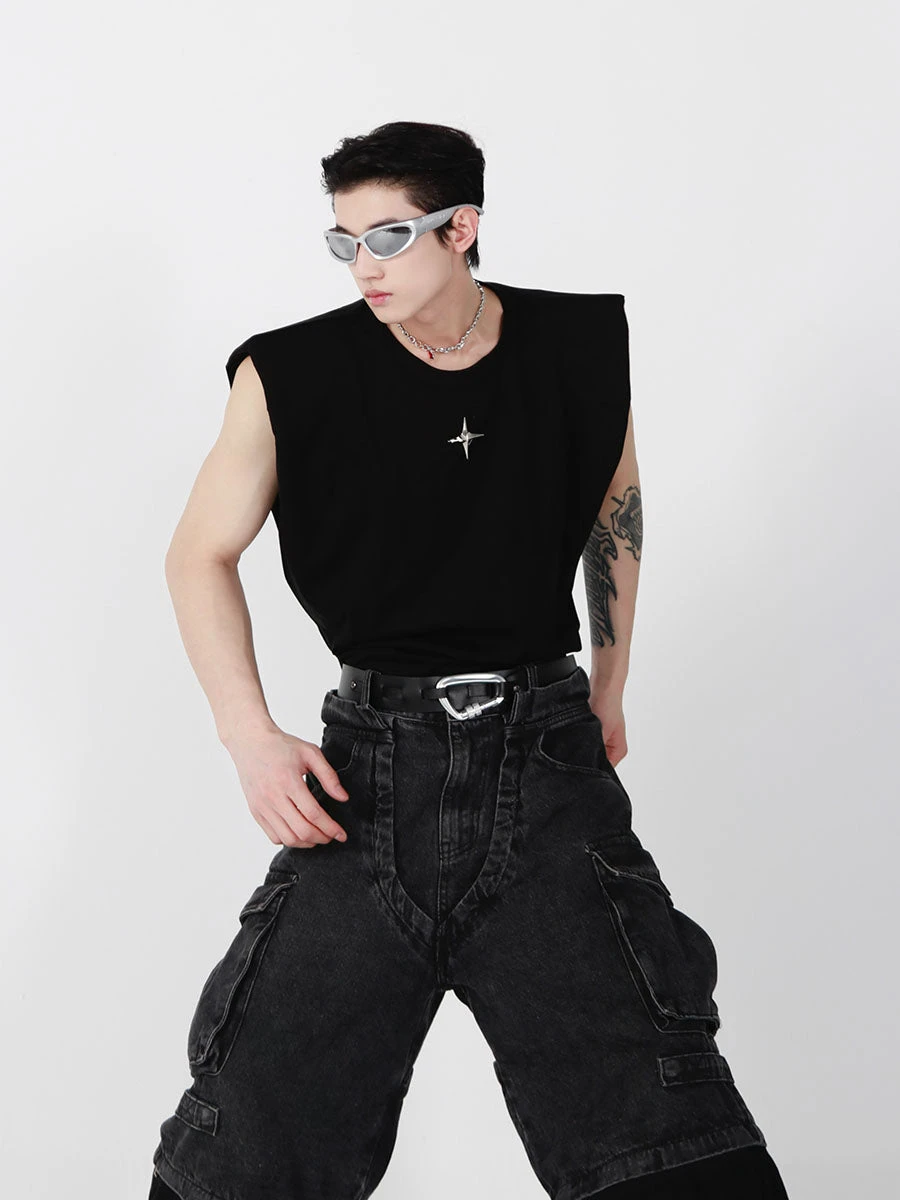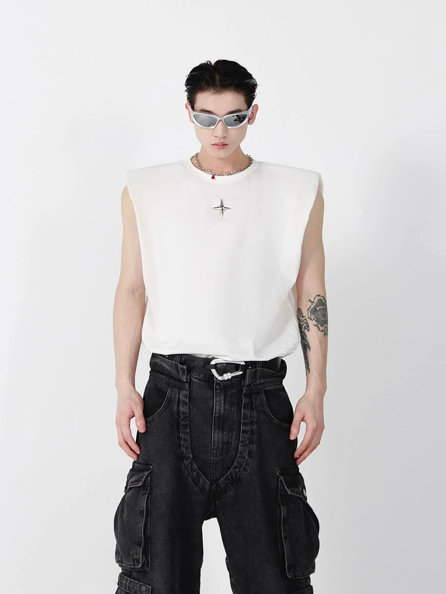 CulturE stretch cotton ripstop tank top, rib knit crewneck and armscyes, silver-tone hardware at front.