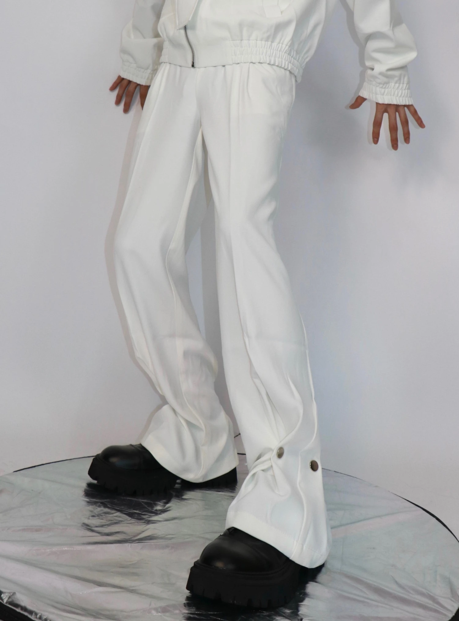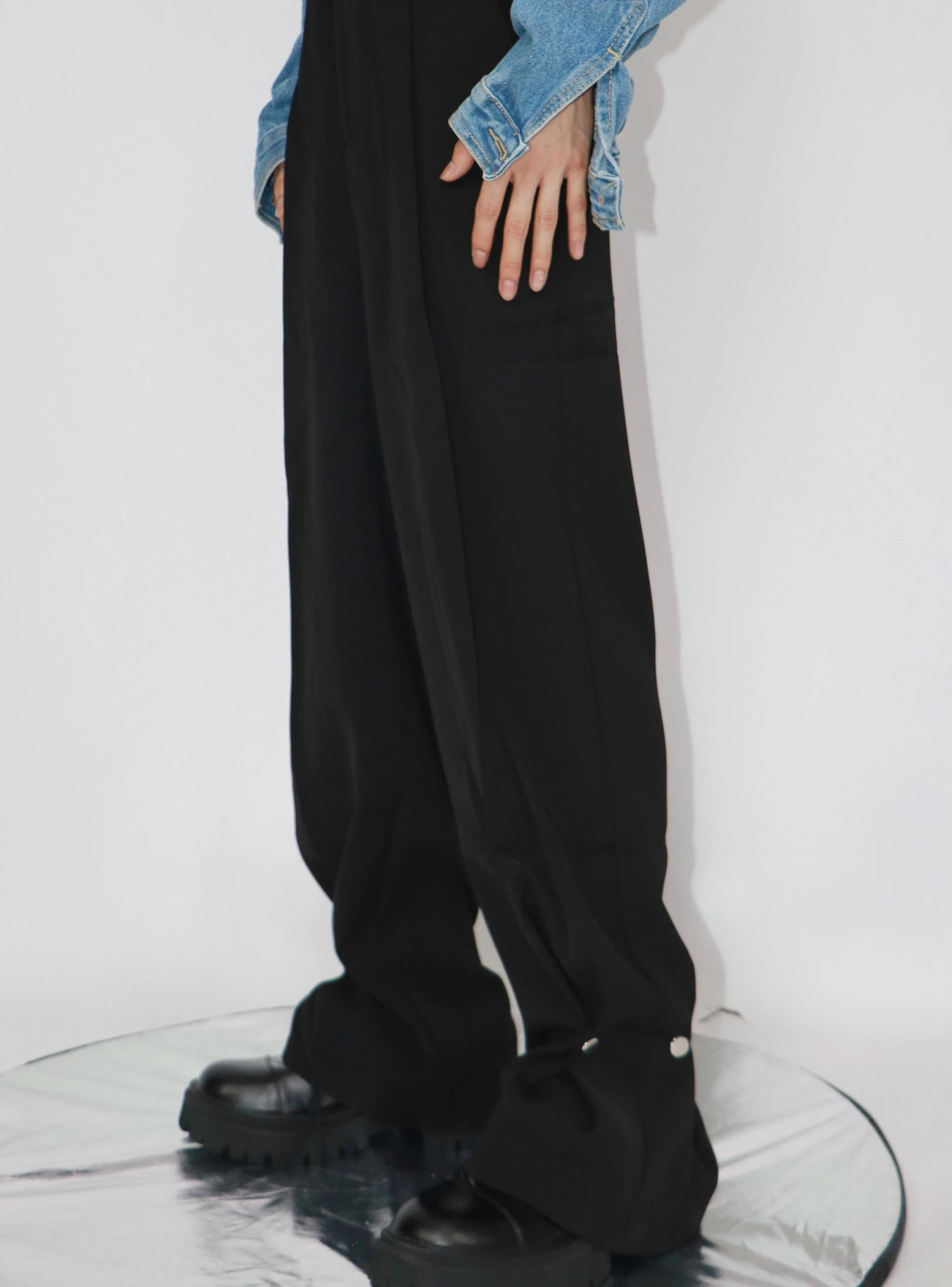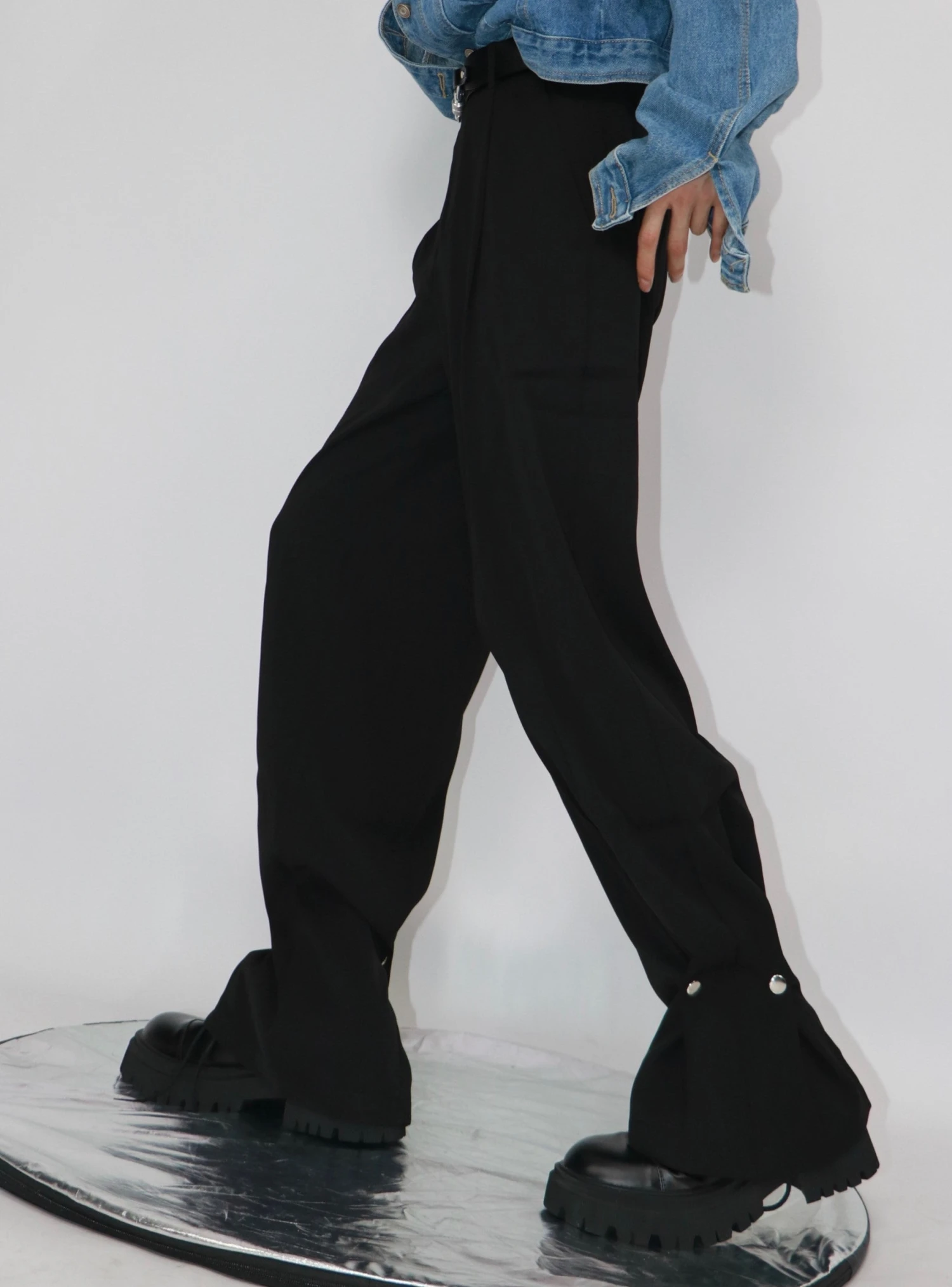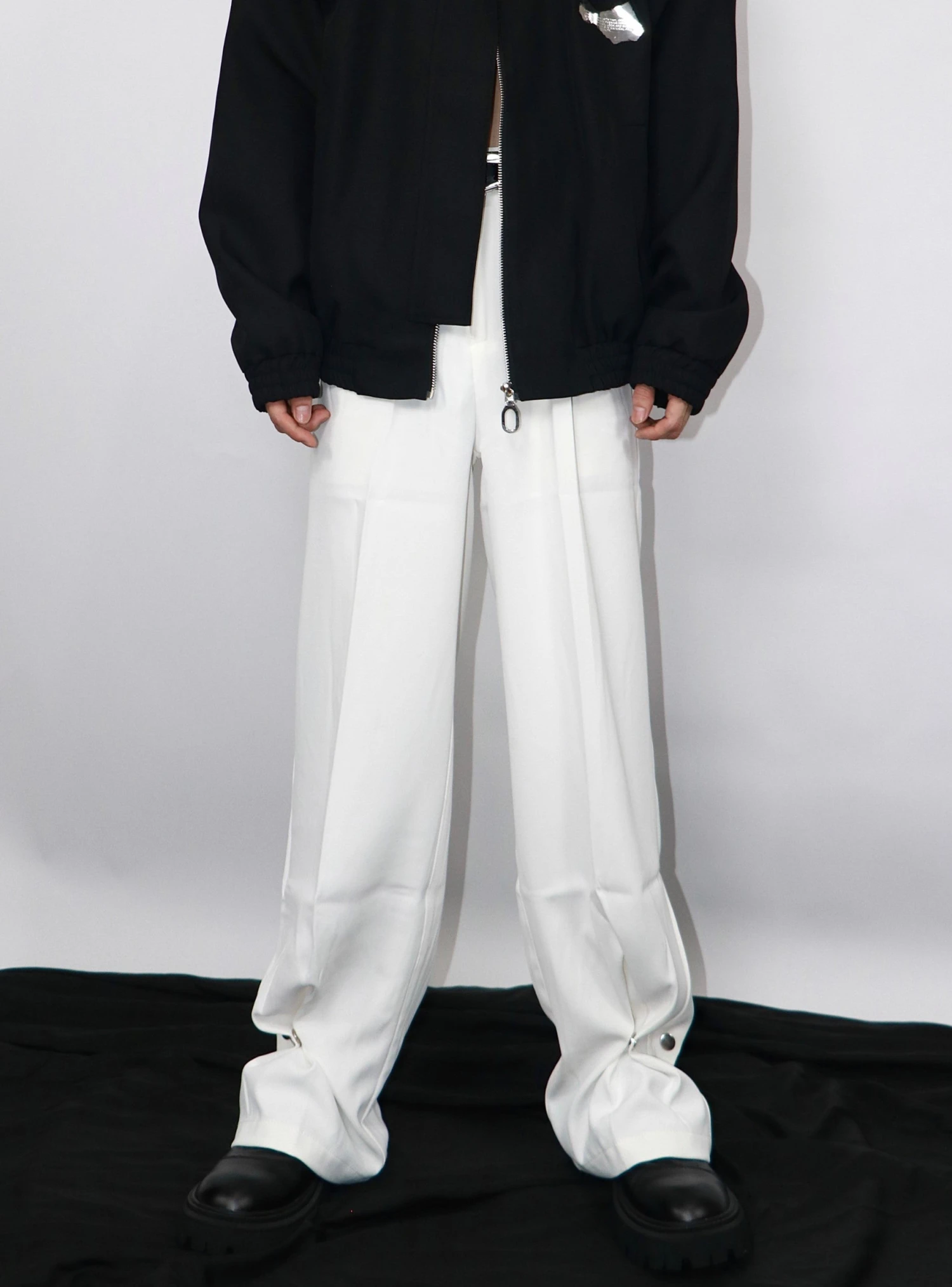 CulturE cotton-blend trousers, press-stud detailing, pleats throughout, belt loops, zip-fly.