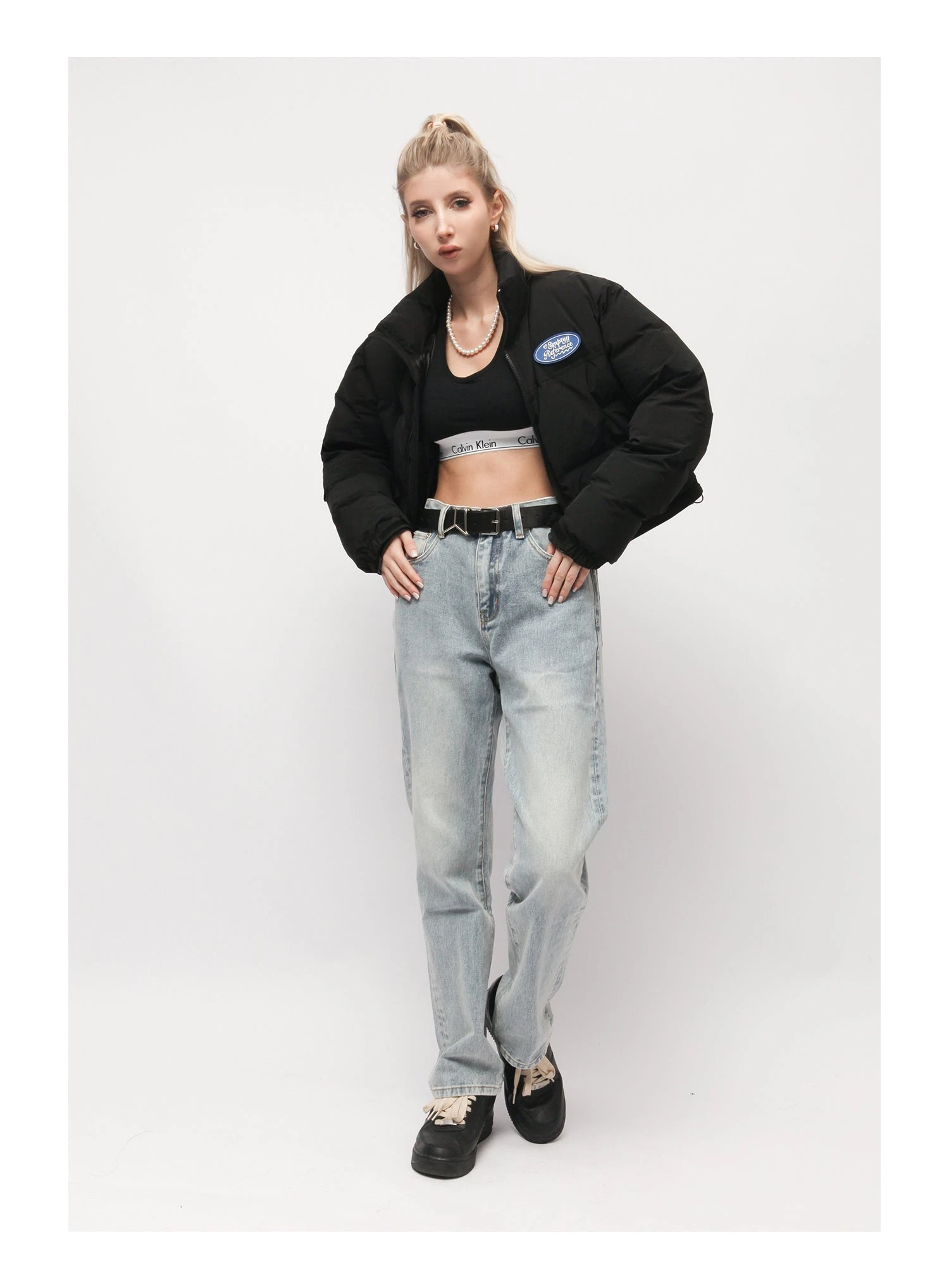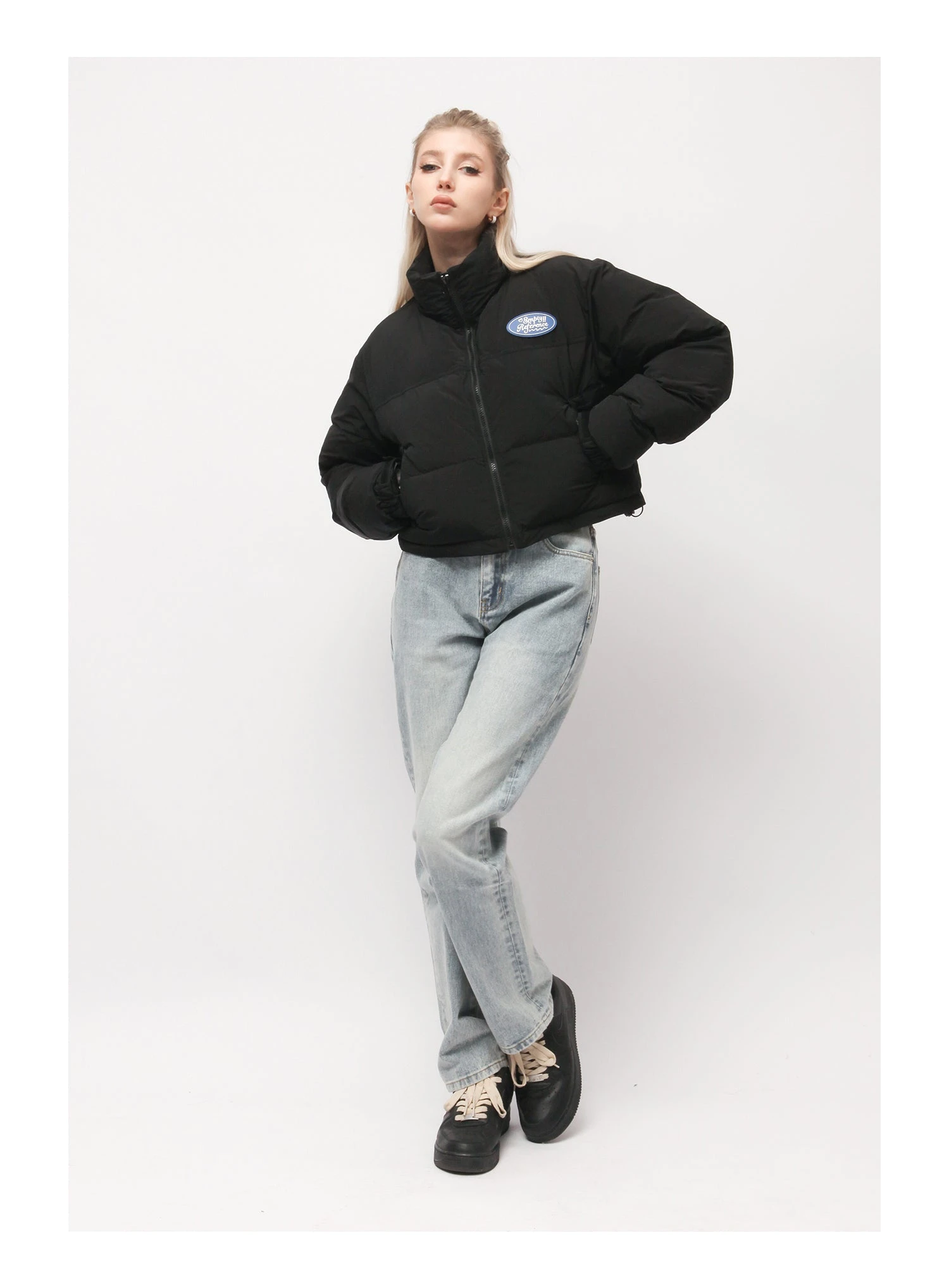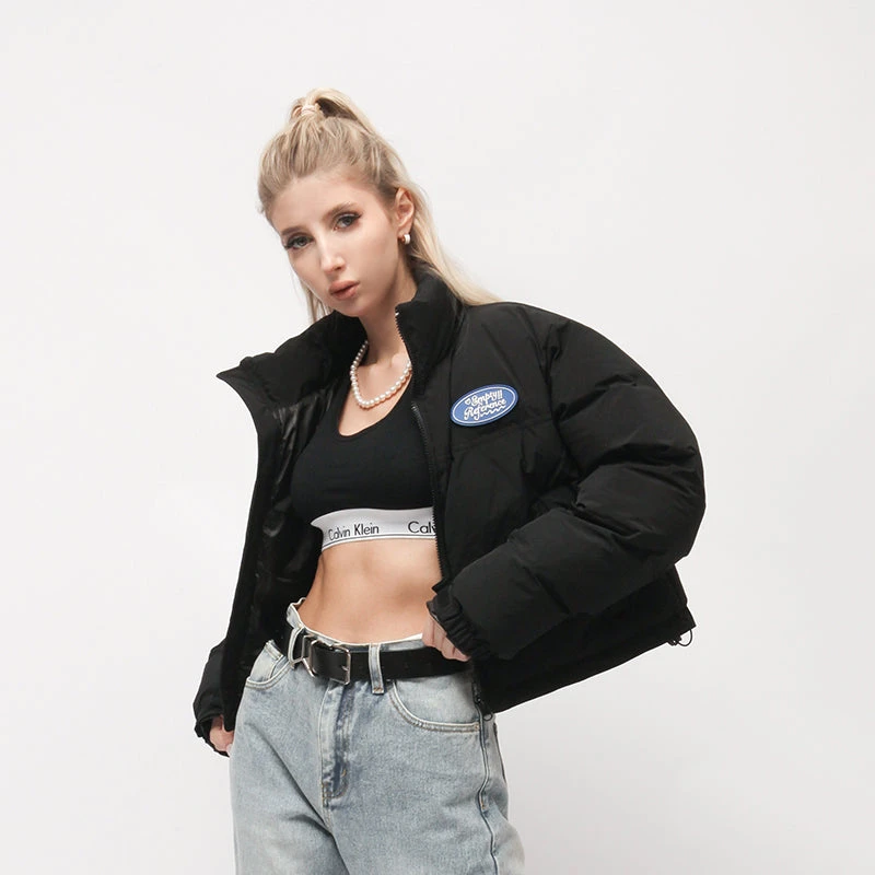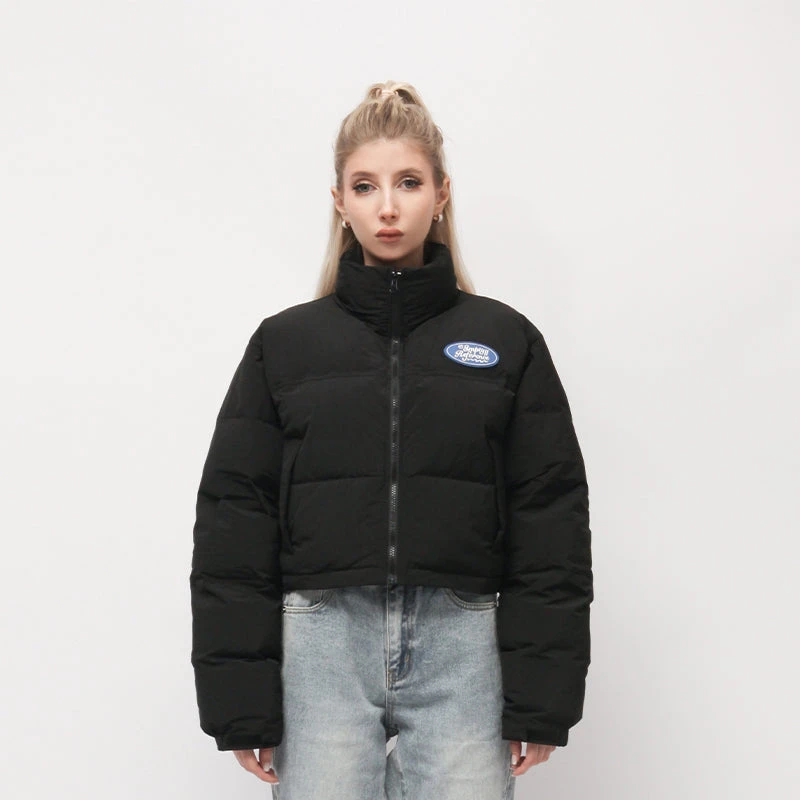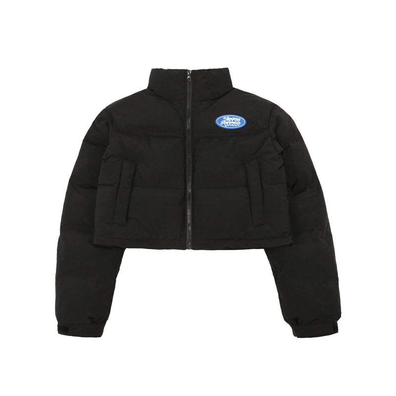 EMPTY REFERENCE polyester puffer jacket, stand collar, zip closure, logo patch at front, concealed pockets, drawstring at cropped hem, elasticized cuffs.