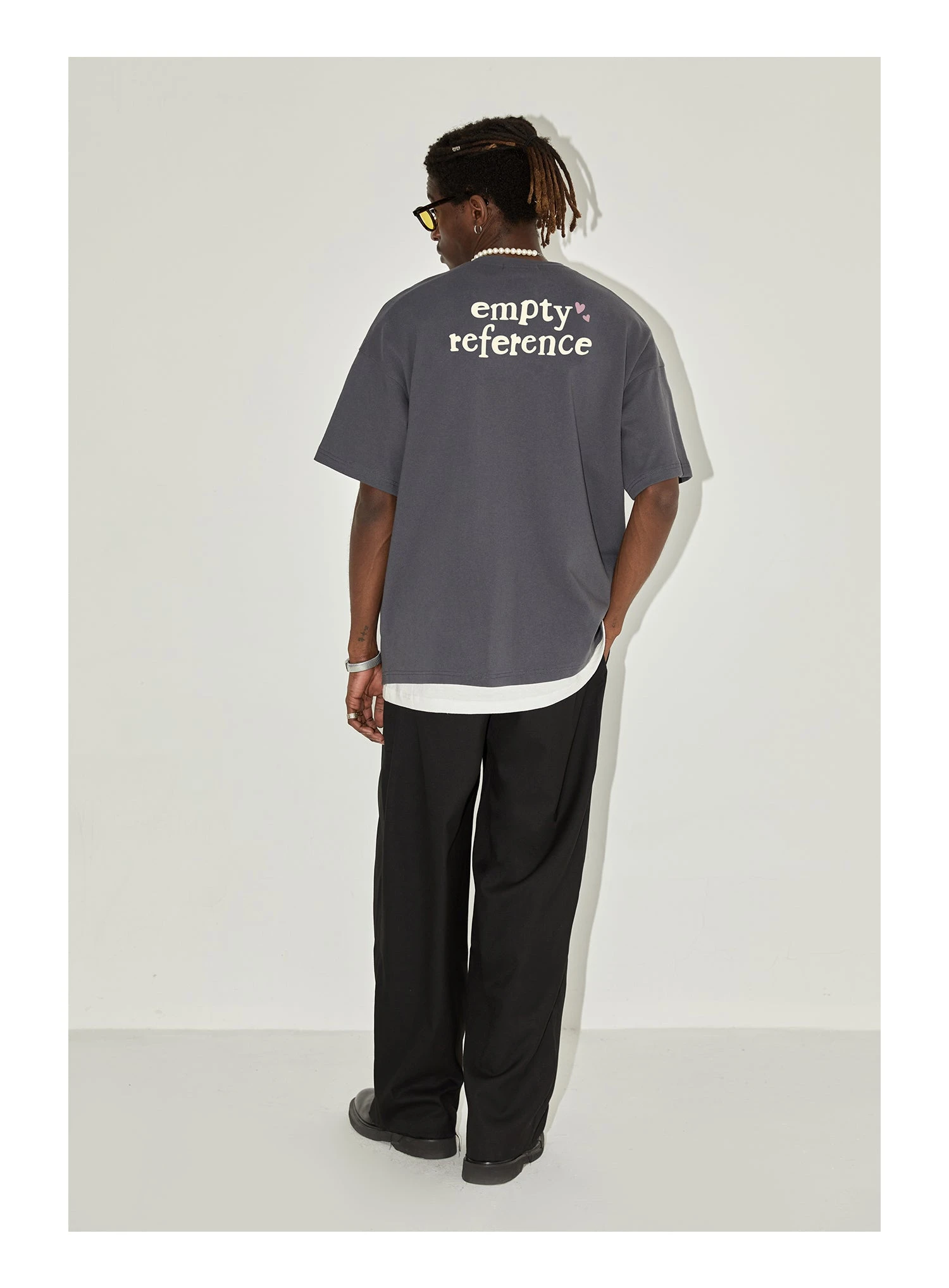 EMPTY REFERENCE cotton shirt, rib-knit crewneck, dropped sleeves, design printed at front, logo printed at back.