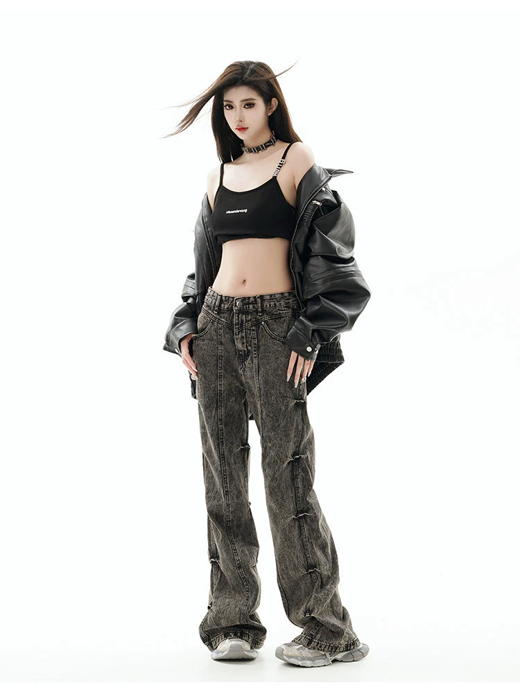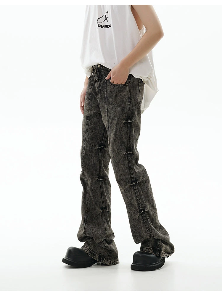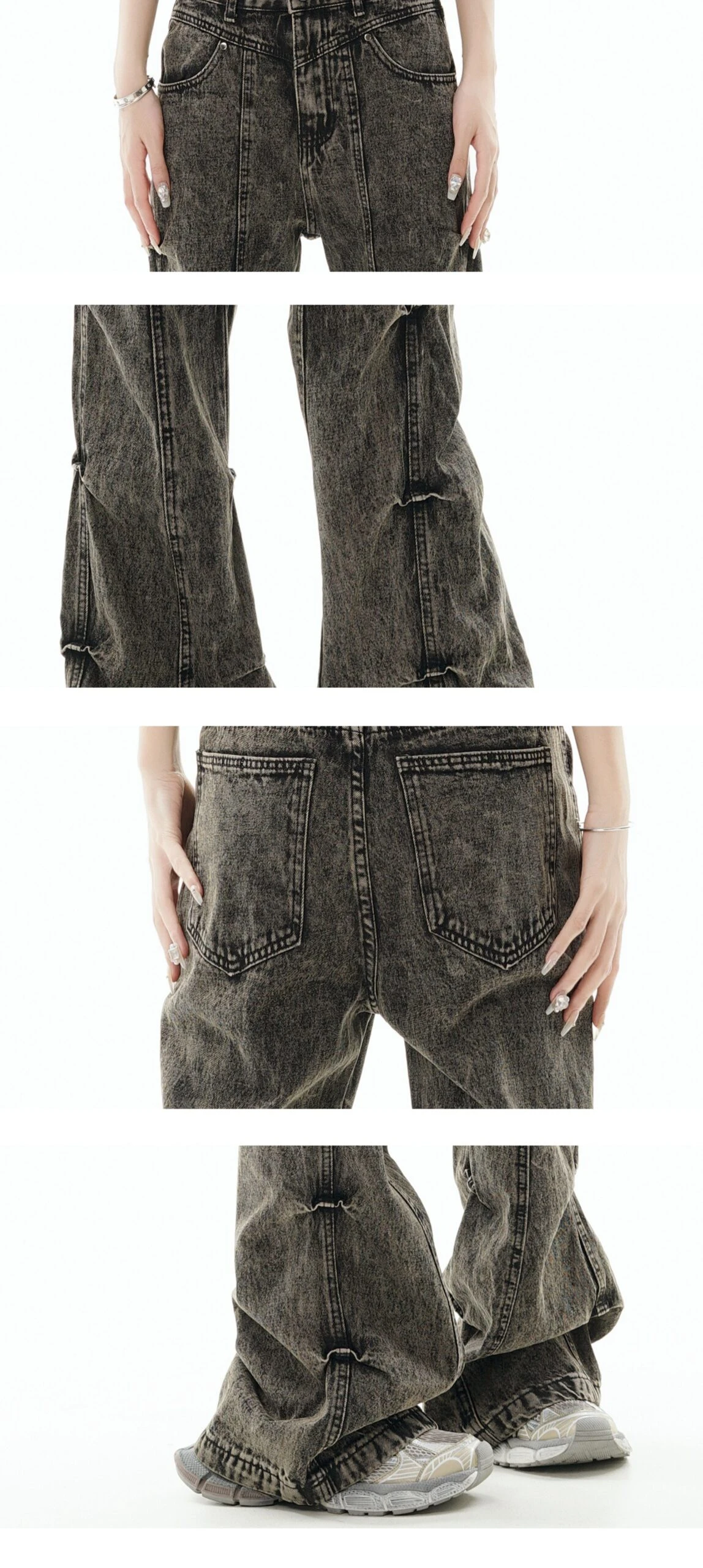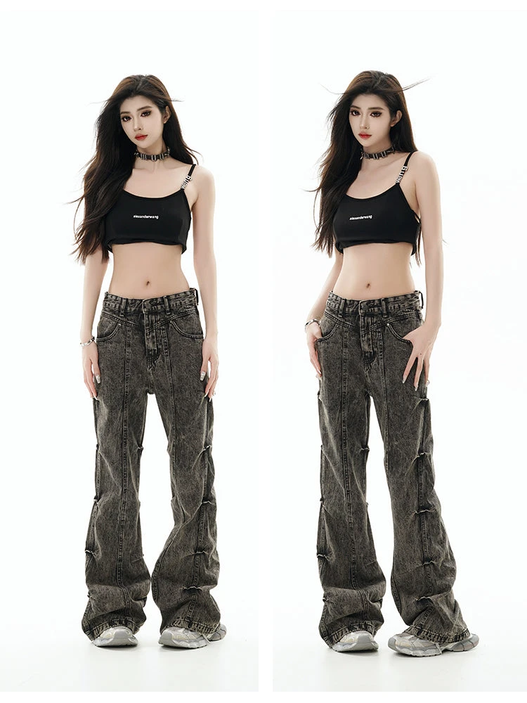 GCINIM baggy denim jeans, acid wash effect throughout, paneled construction, ruched detailing at outseams, belt loops, four-pocket styling, zip-fly.
