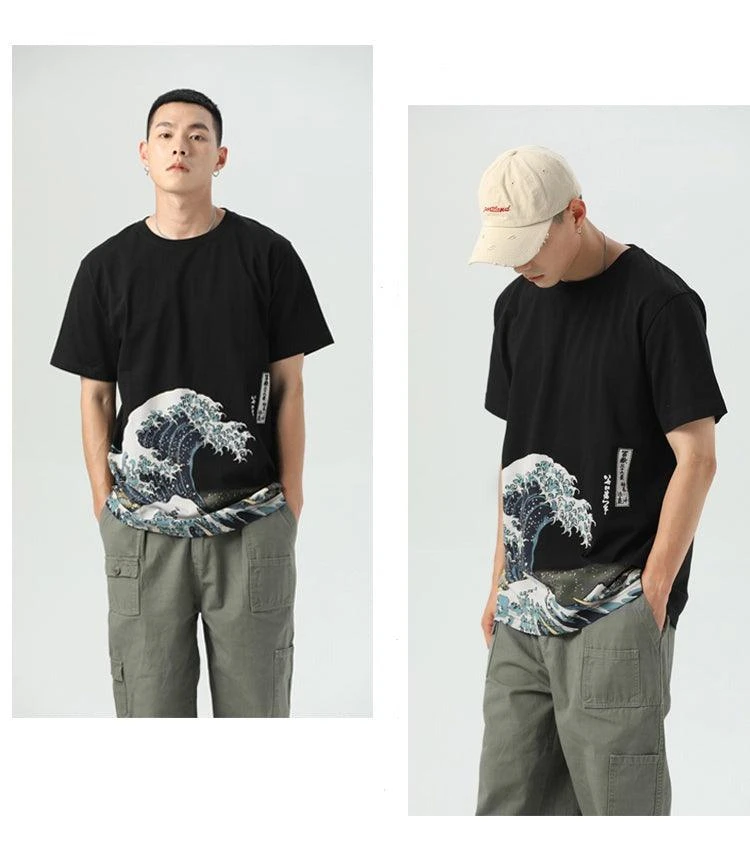 Wave Cotton Tee, rib knit crewneck, double-stitched sleeves and hem, DTG jumbo graphic printed on stomach area.