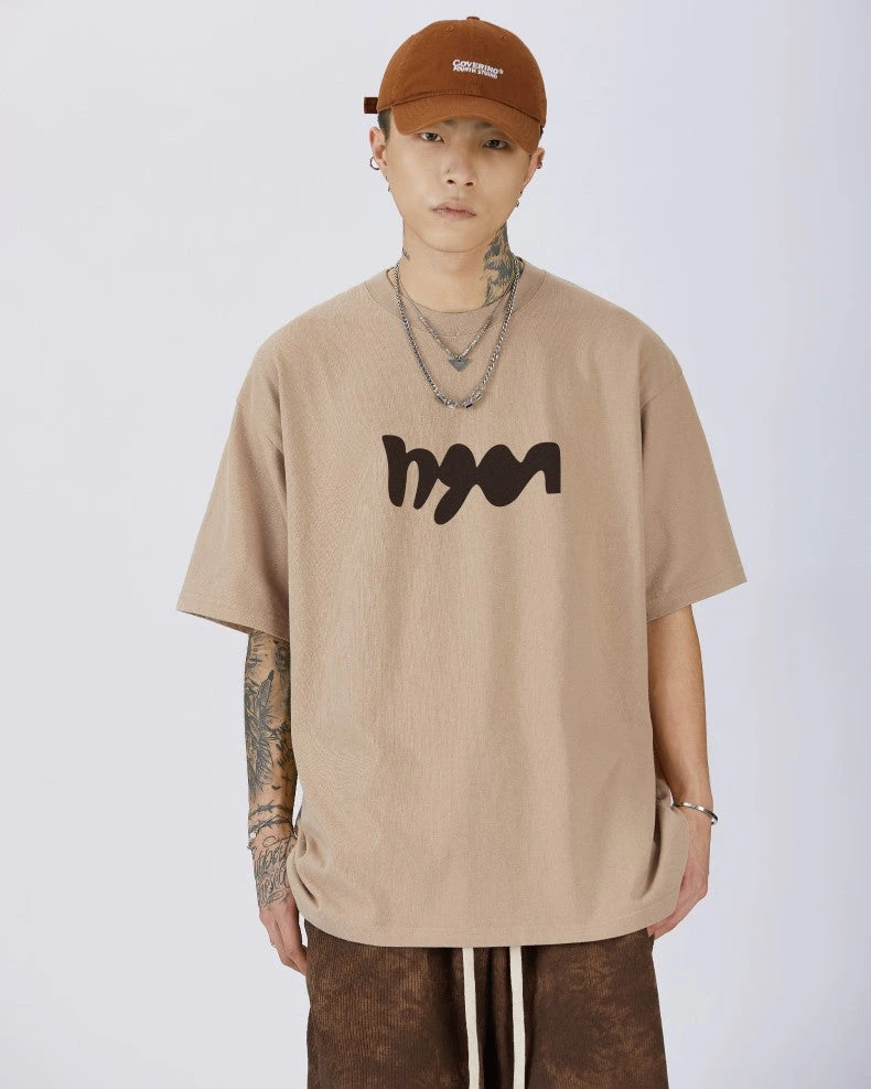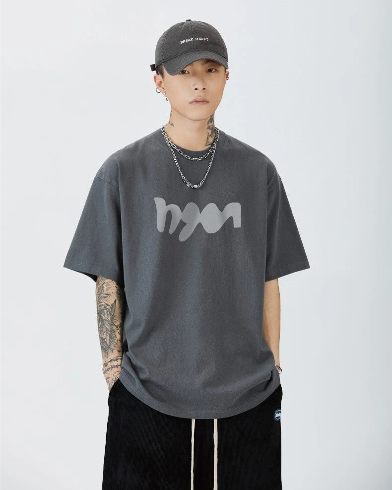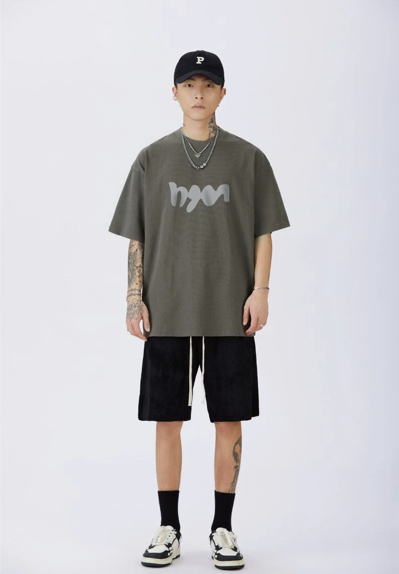 GTRG cotton short sleeve shirt, rib knit crewneck, dropped shoulders, logo printed at chest.