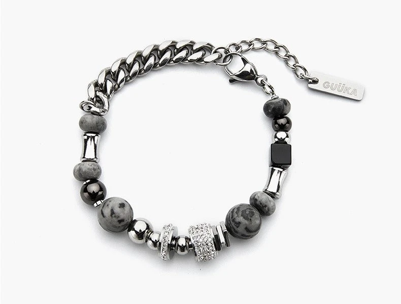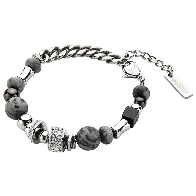 GUUKA curb chain bracelet, marble and rhinestone charms throughout, logo engraved at lobster-clasp fastening, silver-tone hardware.