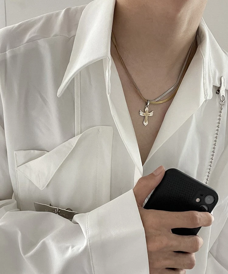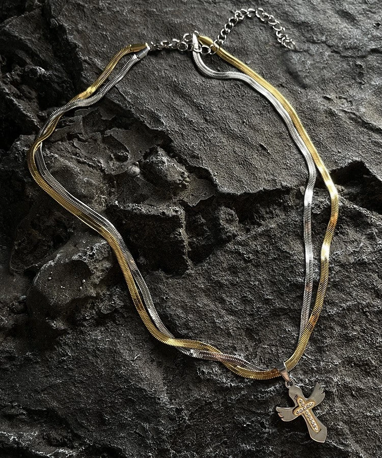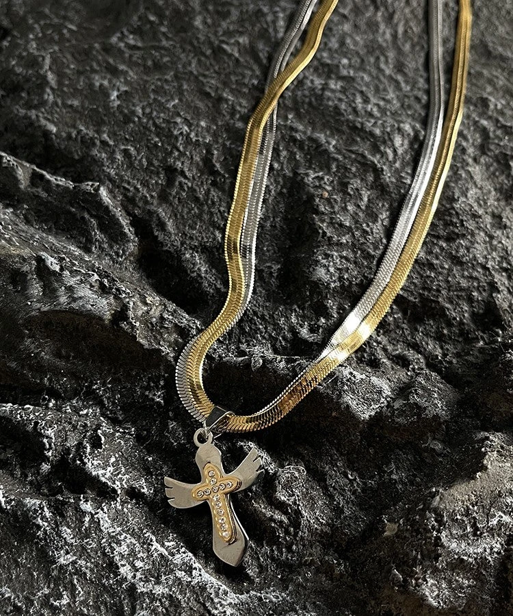 HEIMA Two-Tone Cross Necklace(Heima Two Tone Cross Necklace)