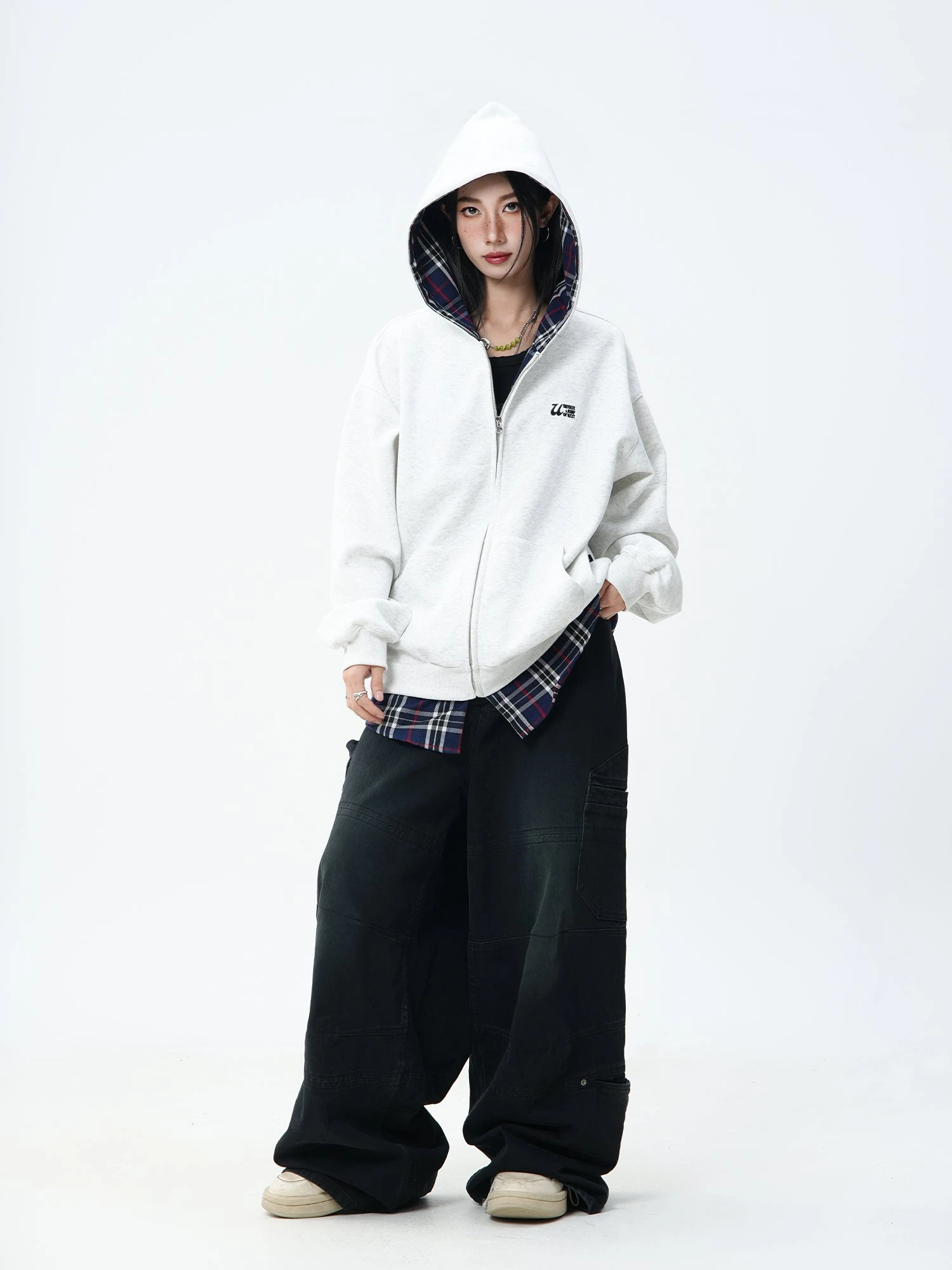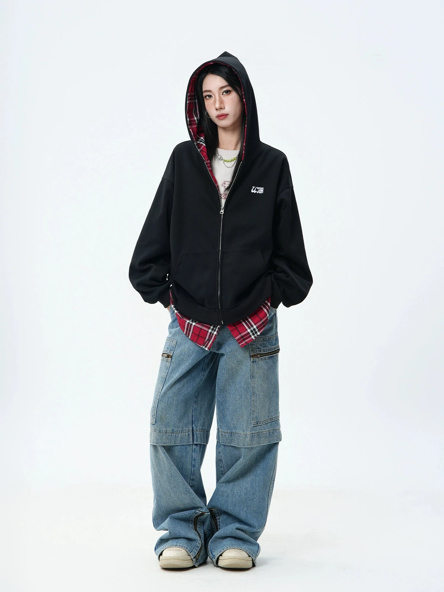 JUMPNEXT padded jacket, oversized plaid flannel lined, logo printed on chest, zip and welt pockets, heavy weight padded cotton, metal zipper, silver-tone hardware.