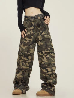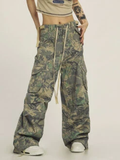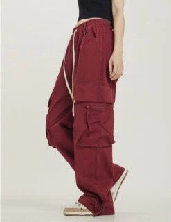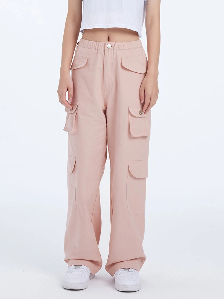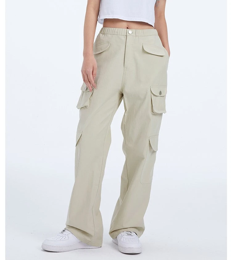 King Prince relaxed-fit cotton cargo pants, summary closure, zip-fly, elasticized waistband, flap-close pockets at front and back, silver-tone hardware.