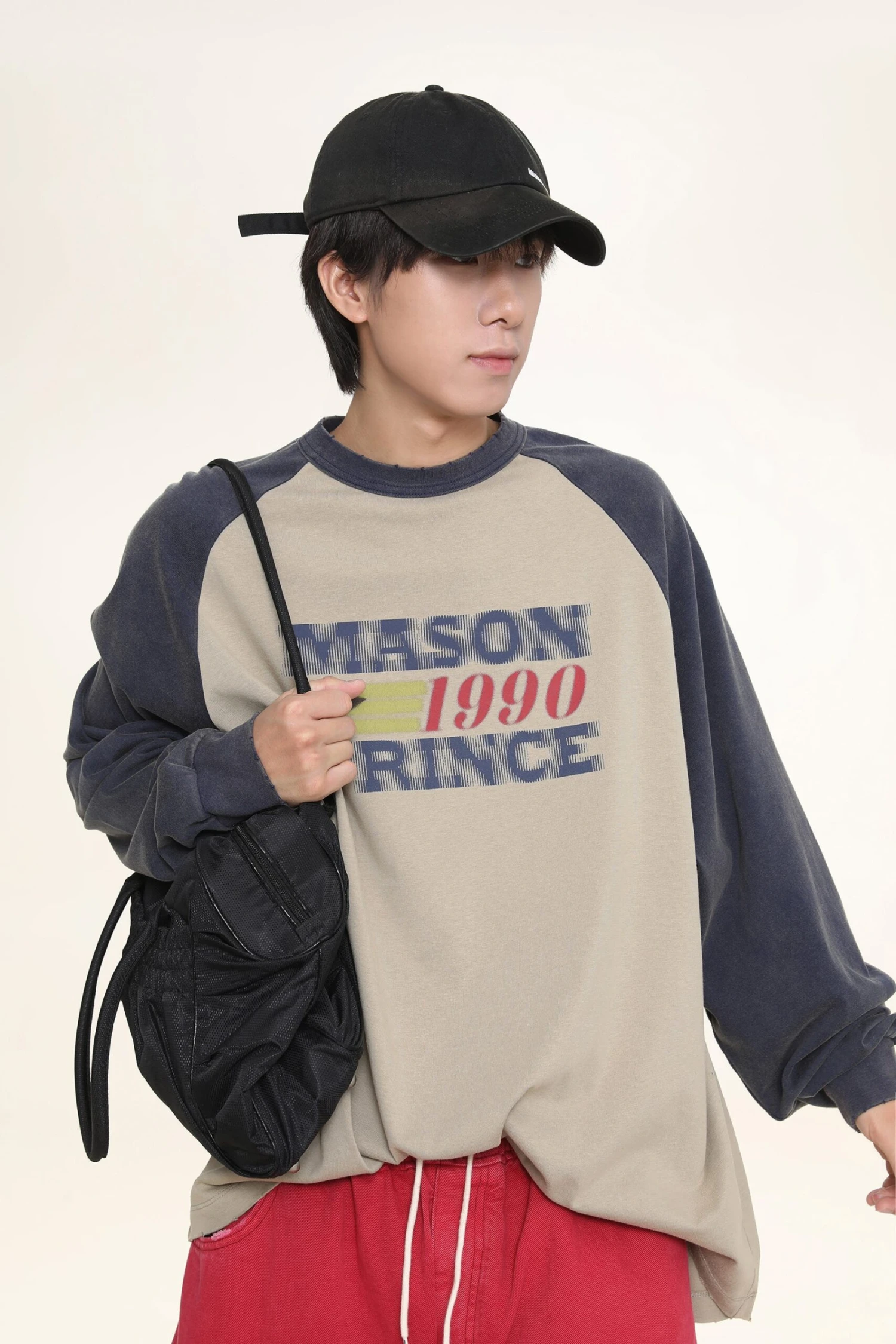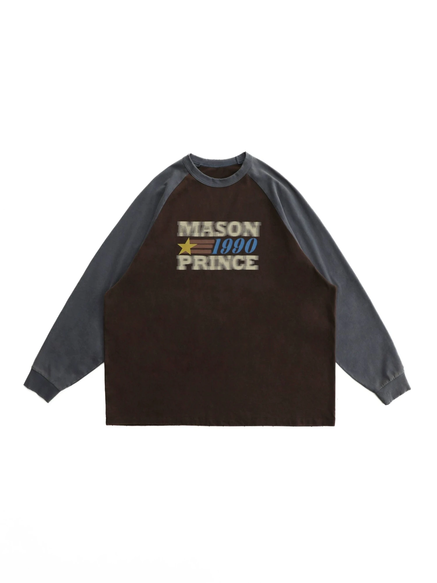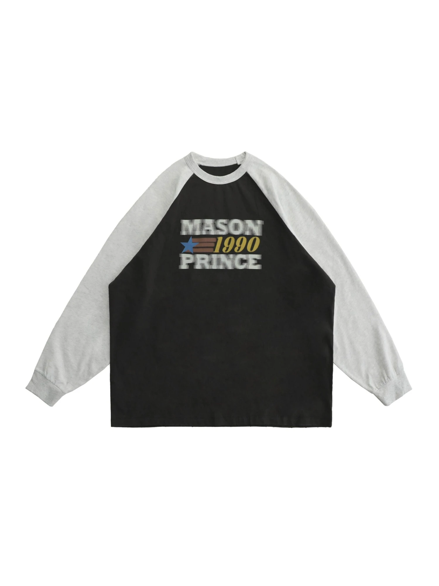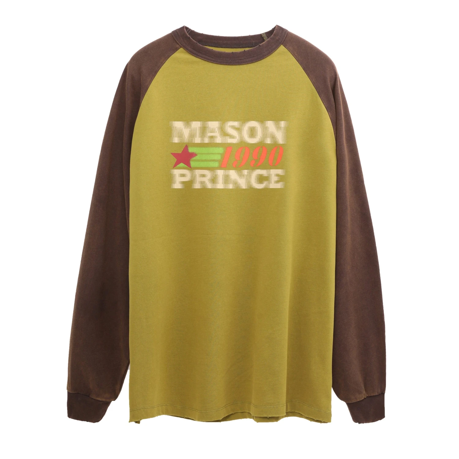 MASONPRINCE cotton long sleeve shirt, rib knit crewneck, logo graphic printed at front.