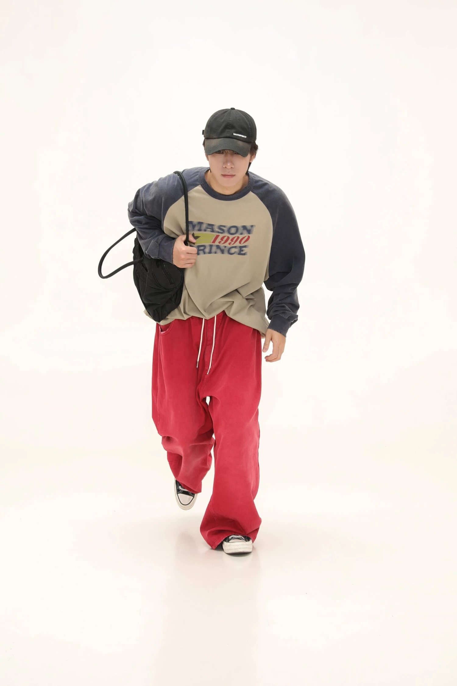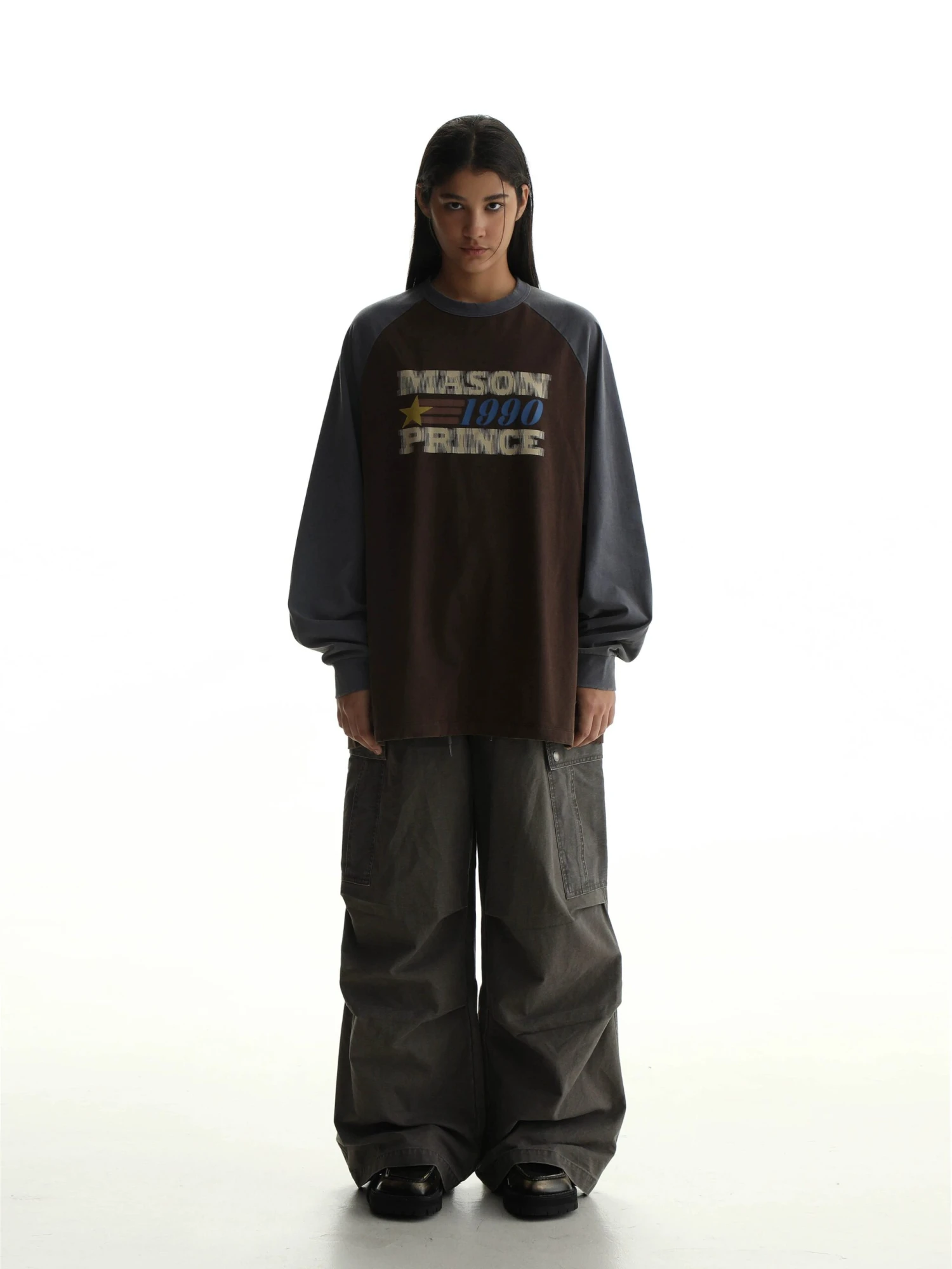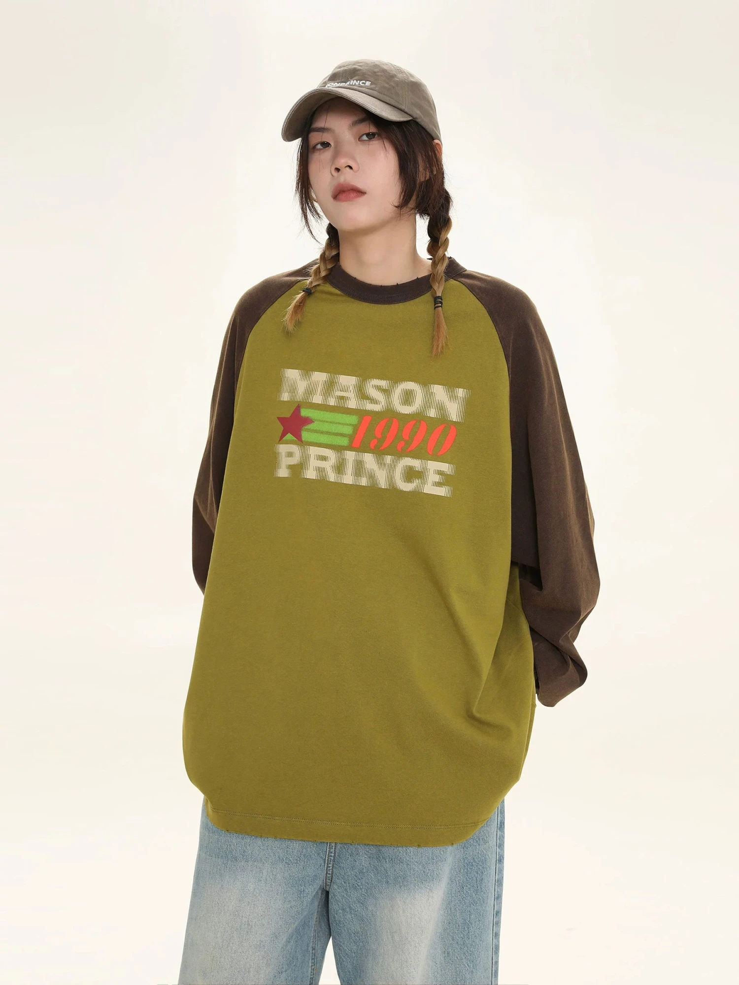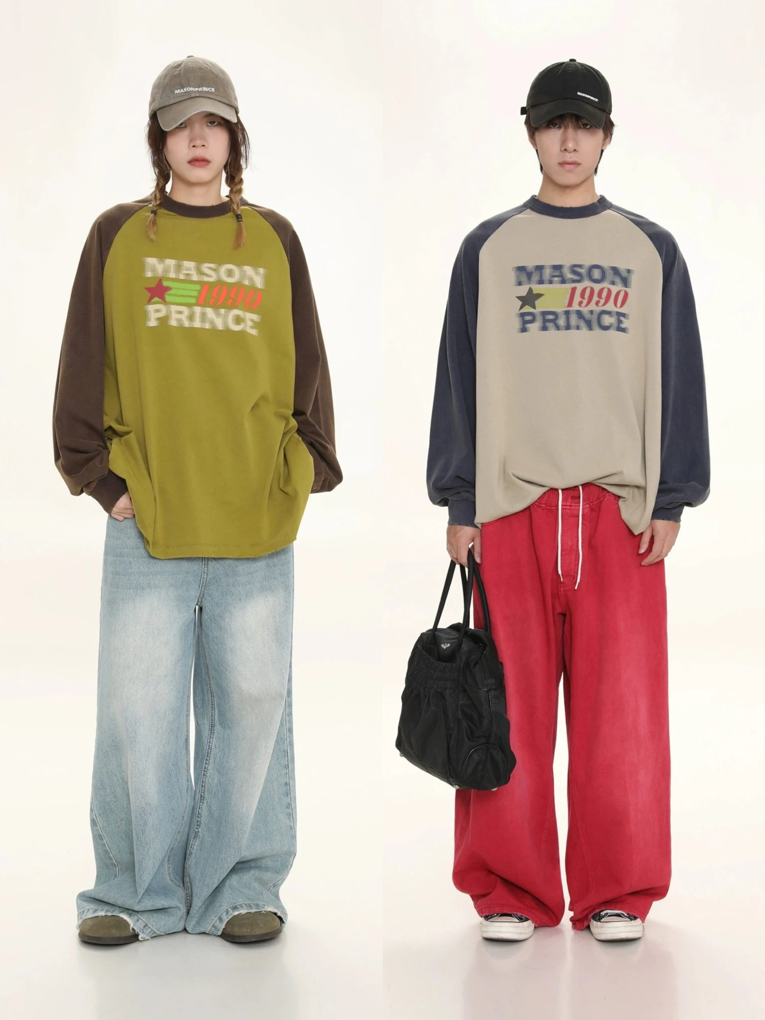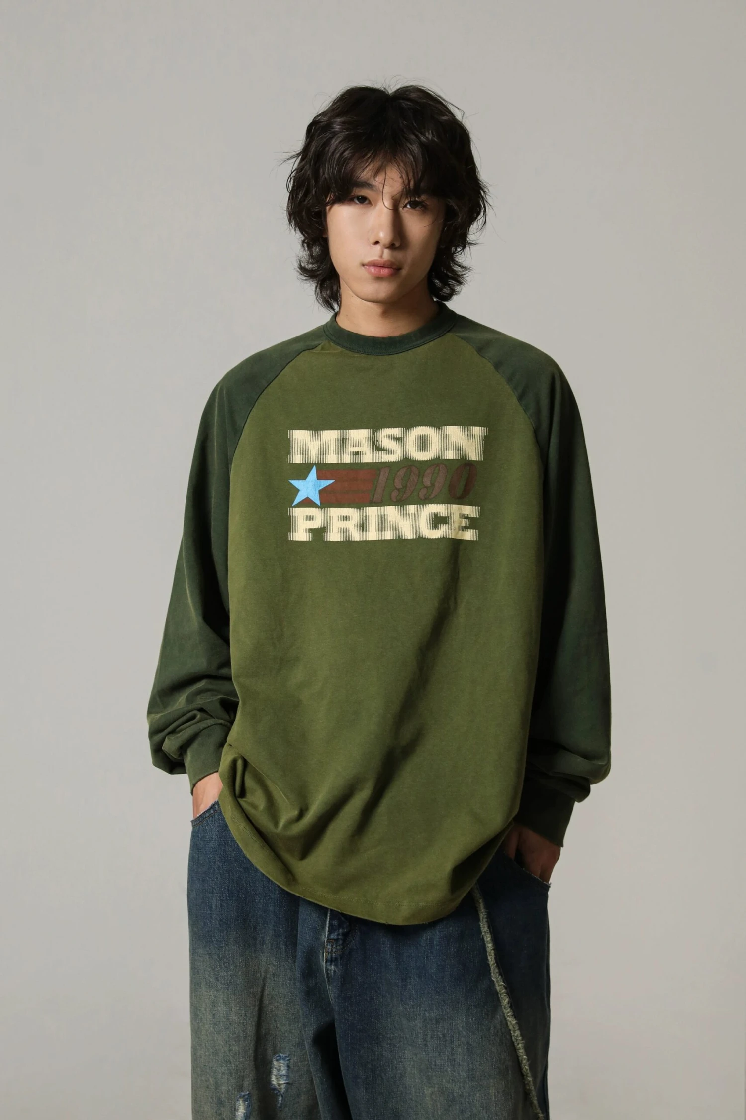 MASONPRINCE cotton long sleeve shirt, rib knit crewneck, logo graphic printed at front.