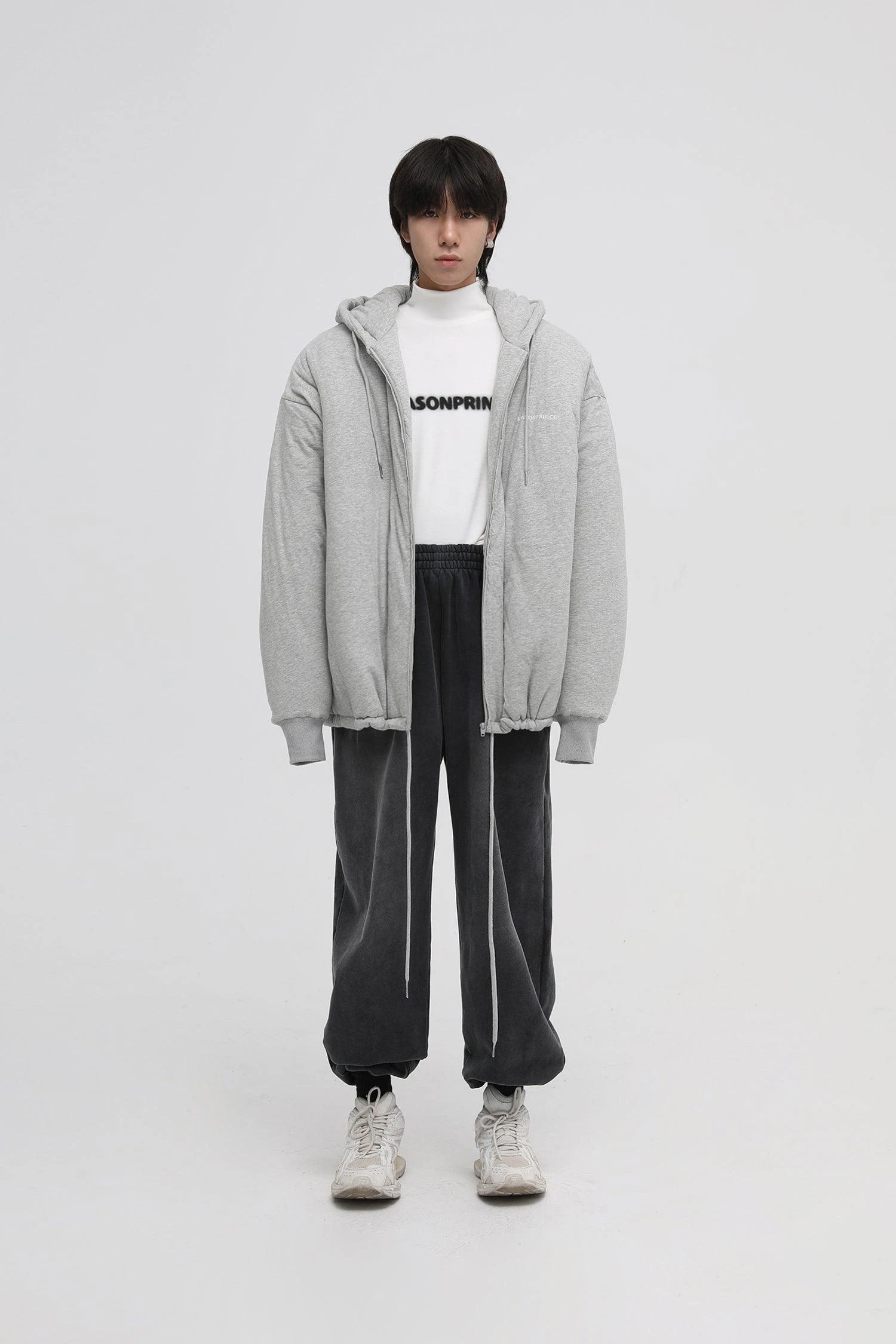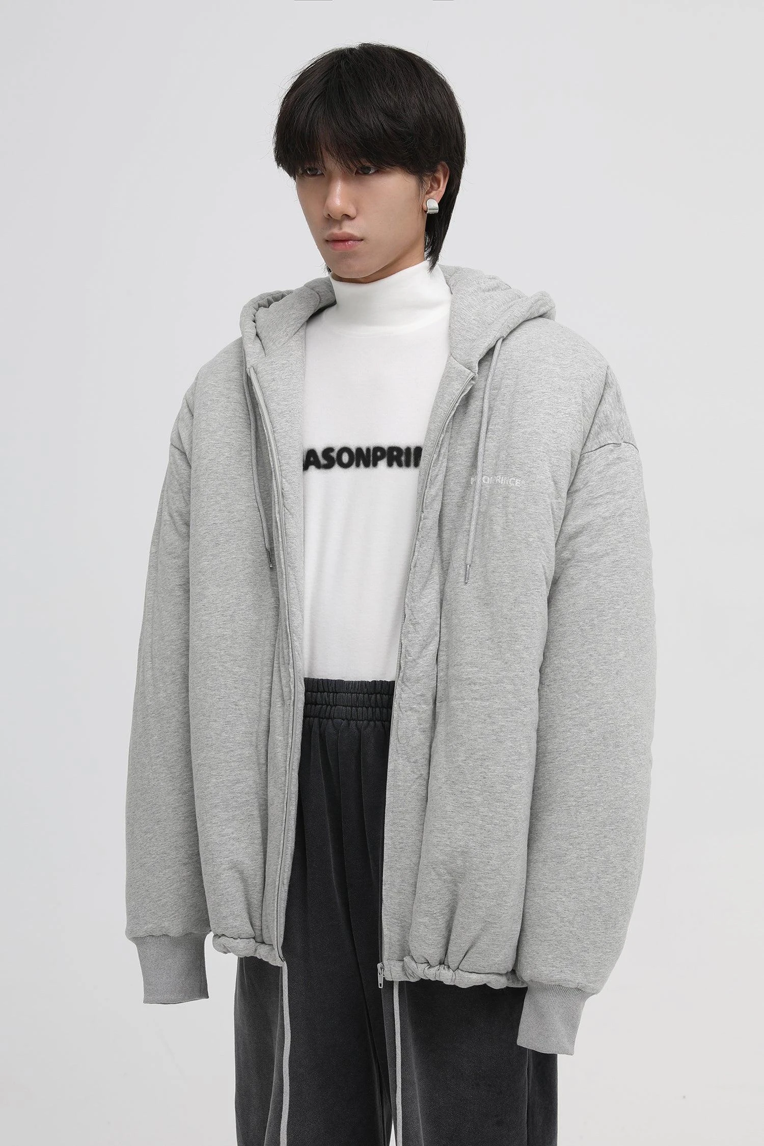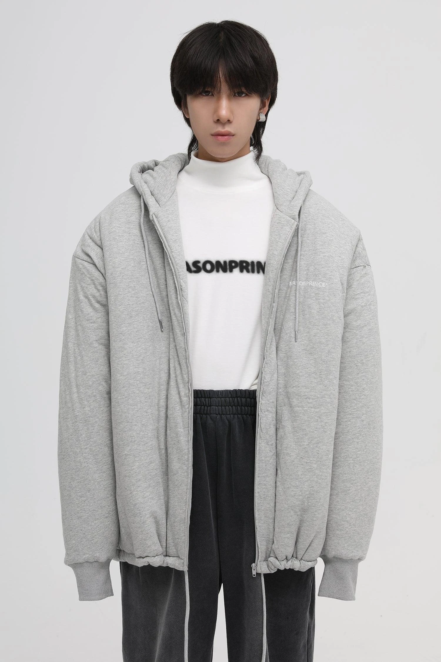 MASONPRINCE padded zip up jacket, soft cotton lining, insulated padding, full-zip, silver hardware, rope style draw-strings.