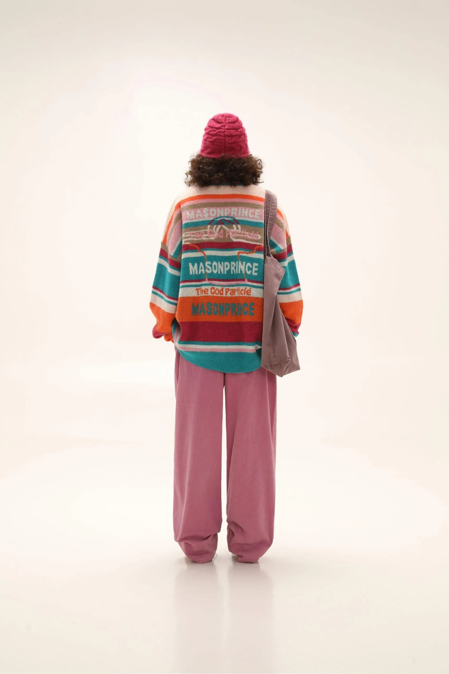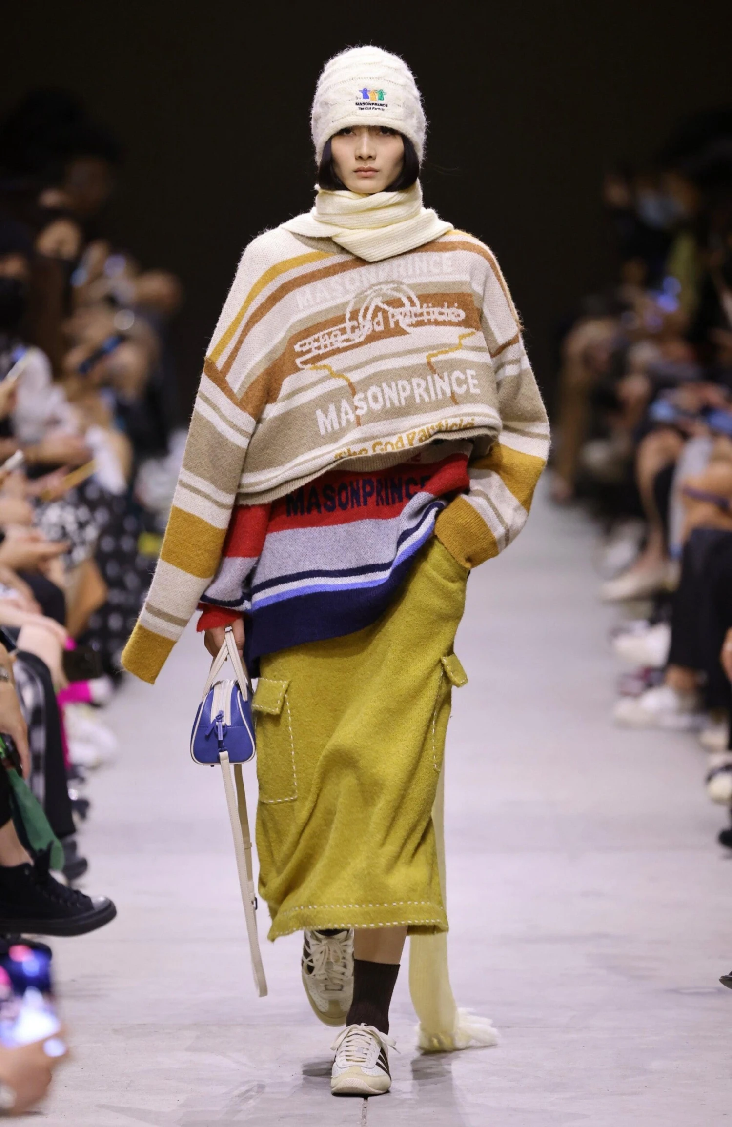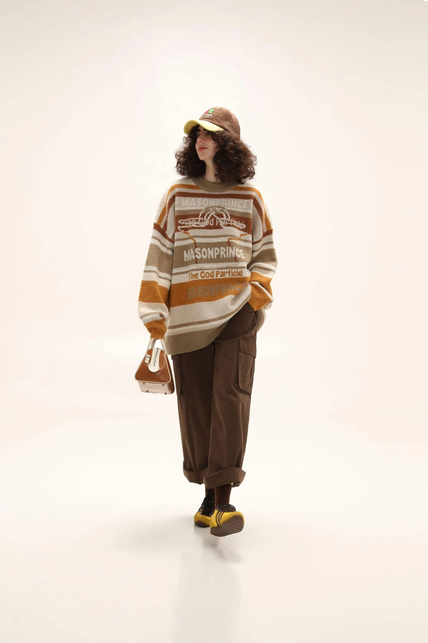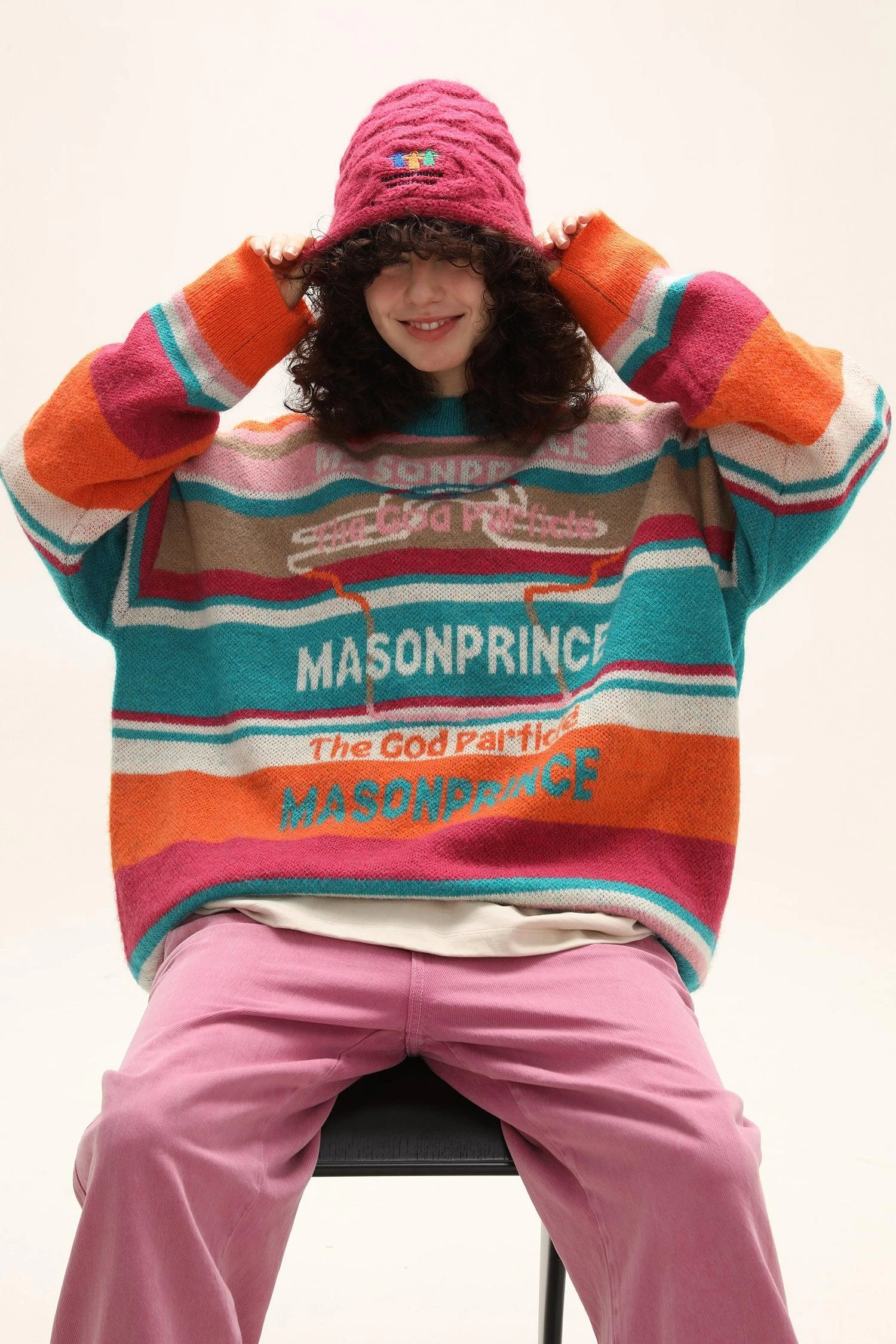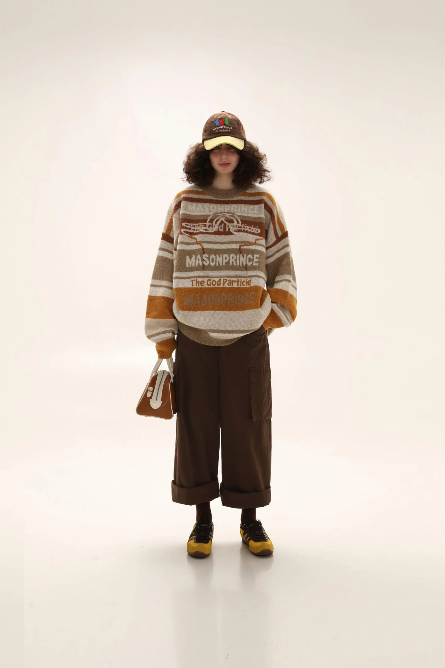 MASONPRINCE alpaca knit sweater, heavy yet breathable waffle knit, ribbed collar/cuffs/hem, tonal stitching, knit striped pattern throughout.