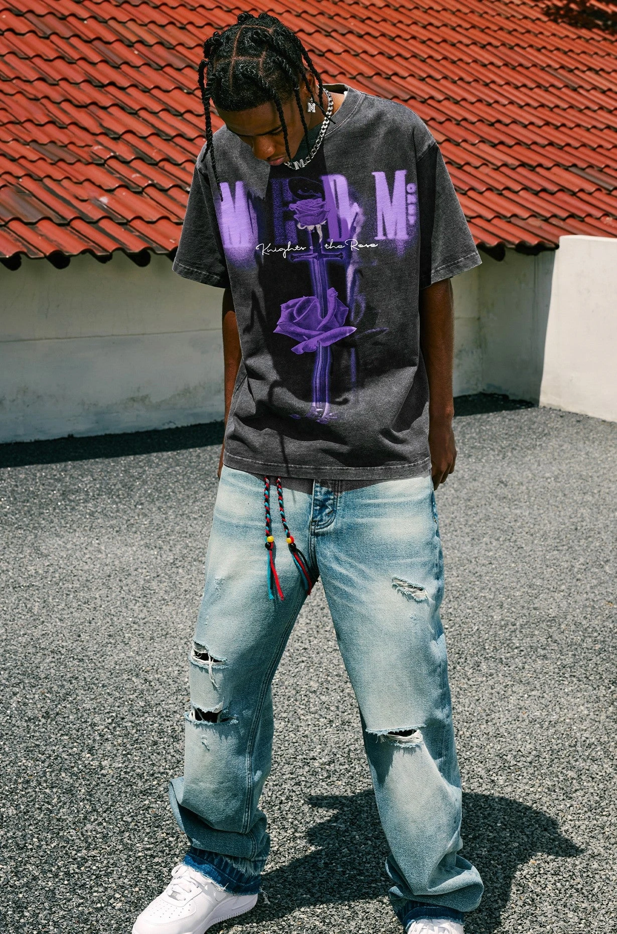 MEDM cotton short sleeve shirt, rib knit crewneck/hem/cuffs, dropped shoulders, design embedded at front and back for a long lasting print. Hand-washed staining for a vintage look & feel.Â