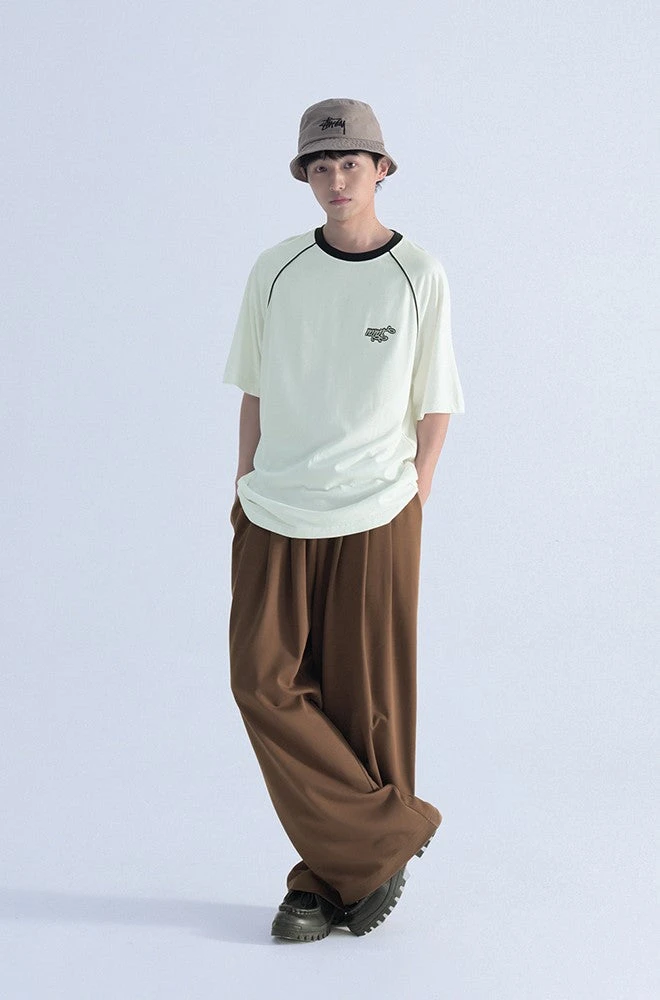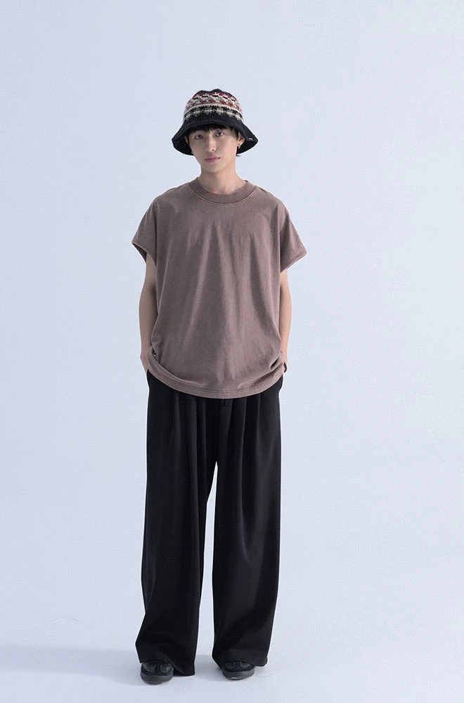 Mentmate cotton-blend wide-leg pants, drawstring at elasticized waistband, four-pocket styling.