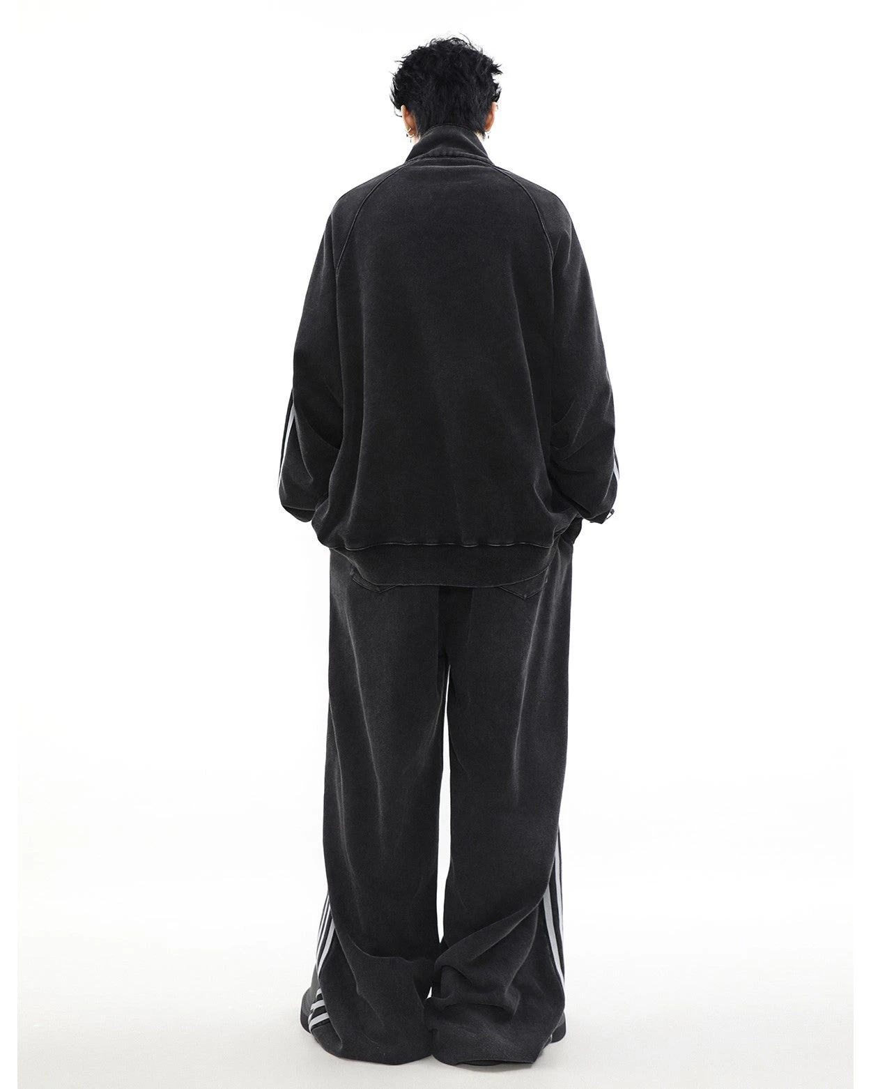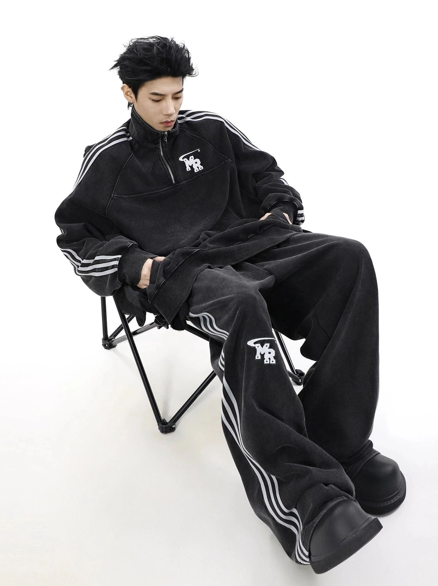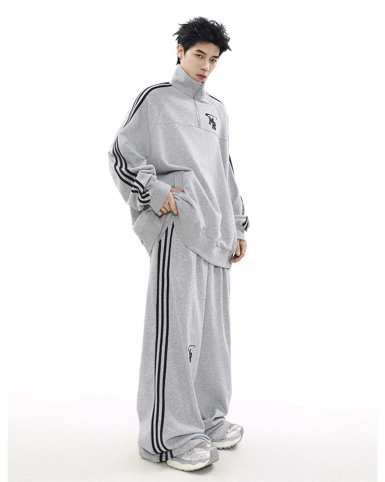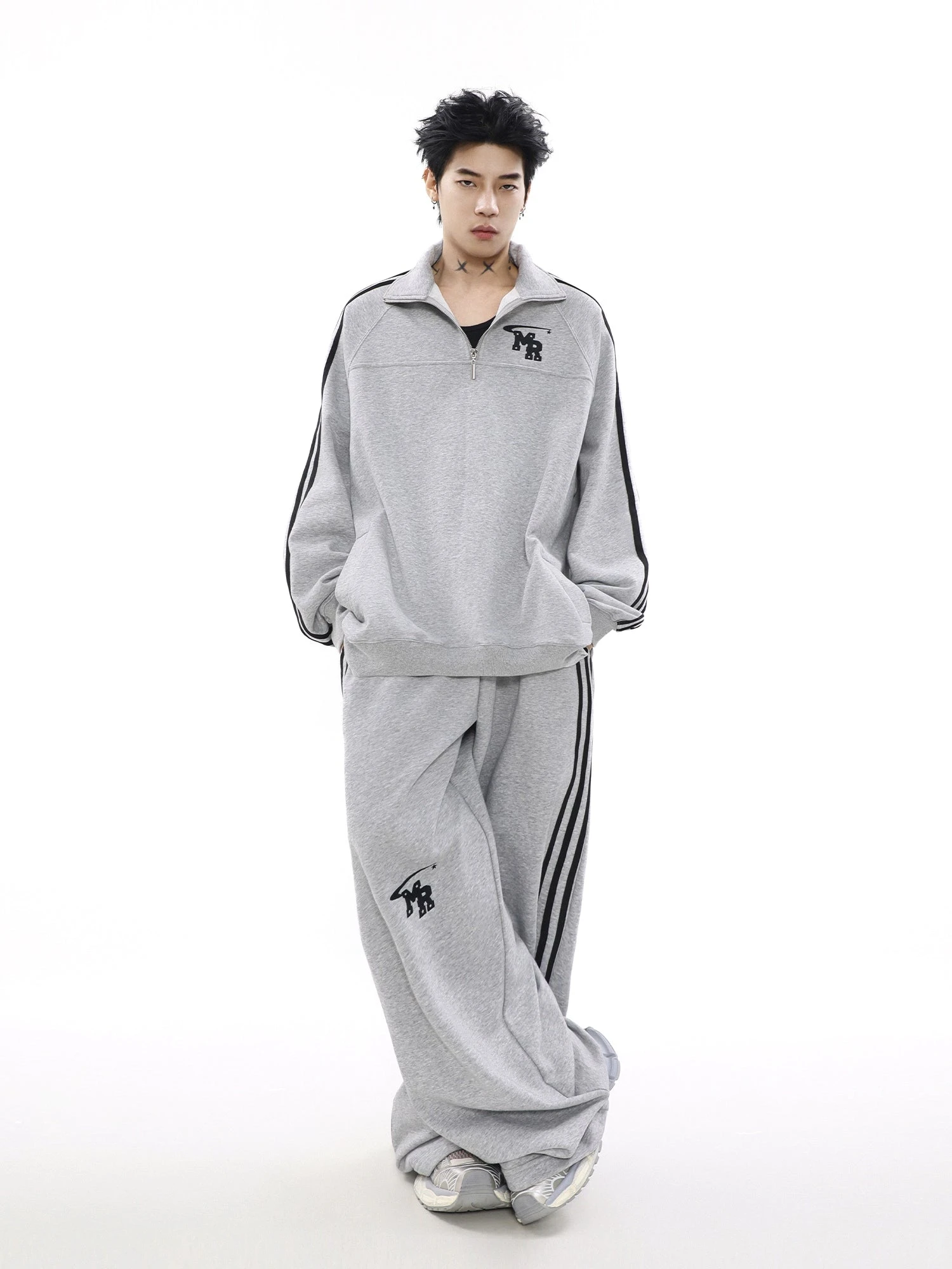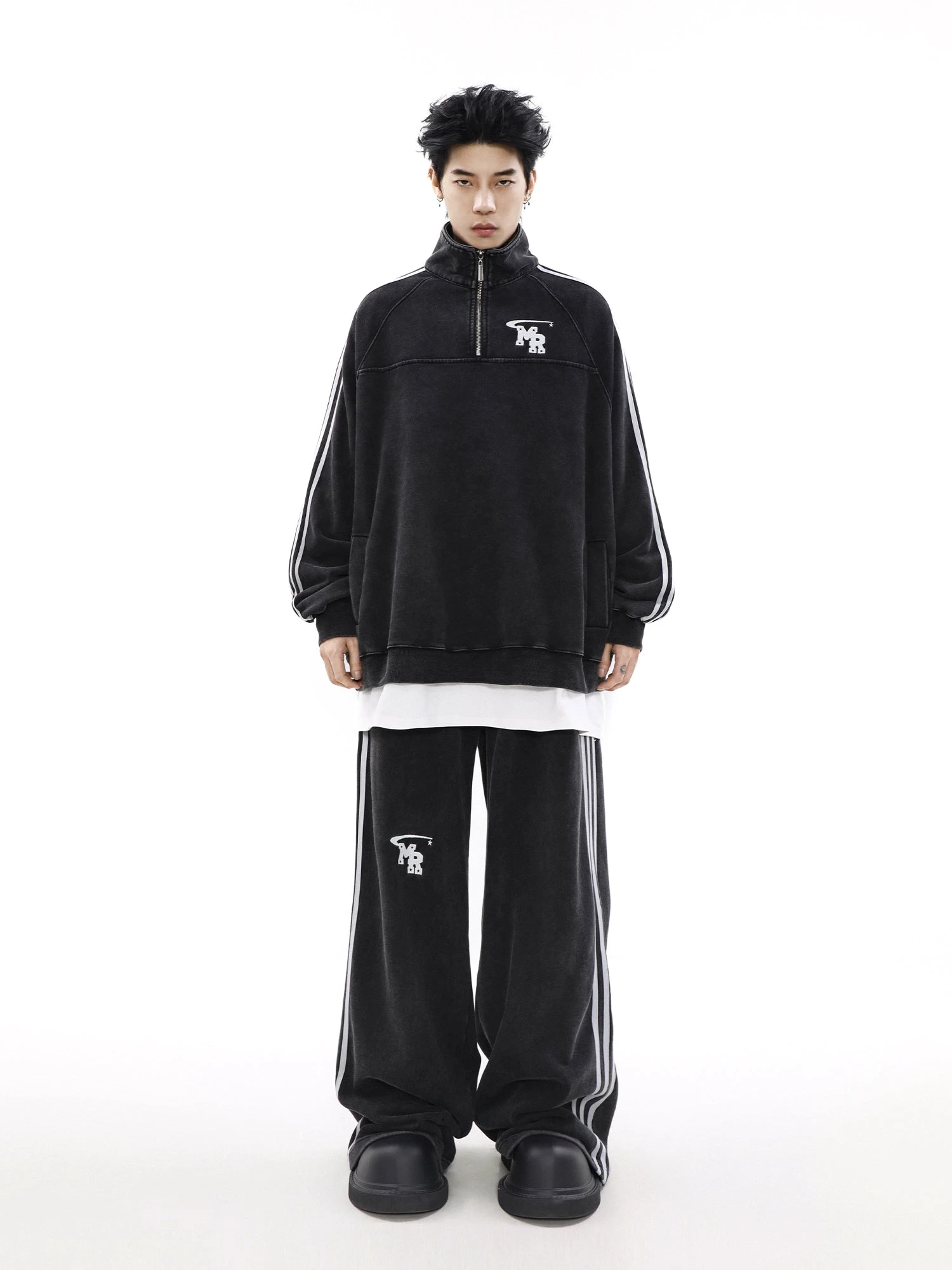 MRNEARLY cotton jacket, rib knit stand collar, ribbed cuffs & hem, half-zip closure, logo patch at chest, jacquard stripes at sleeves, kangaroo pocket.