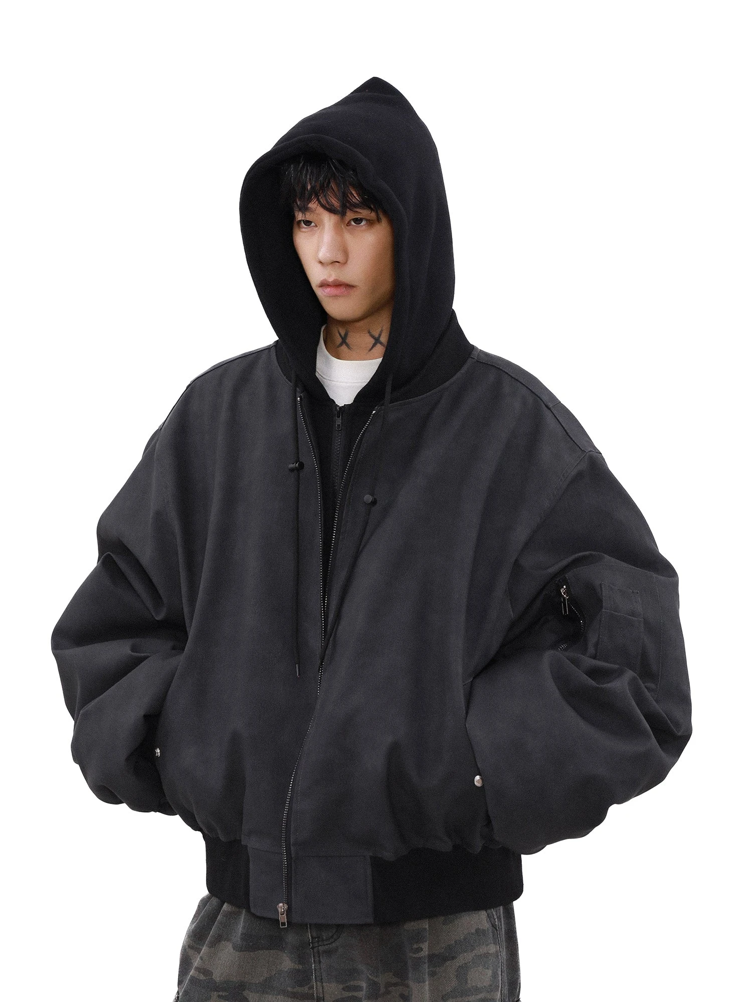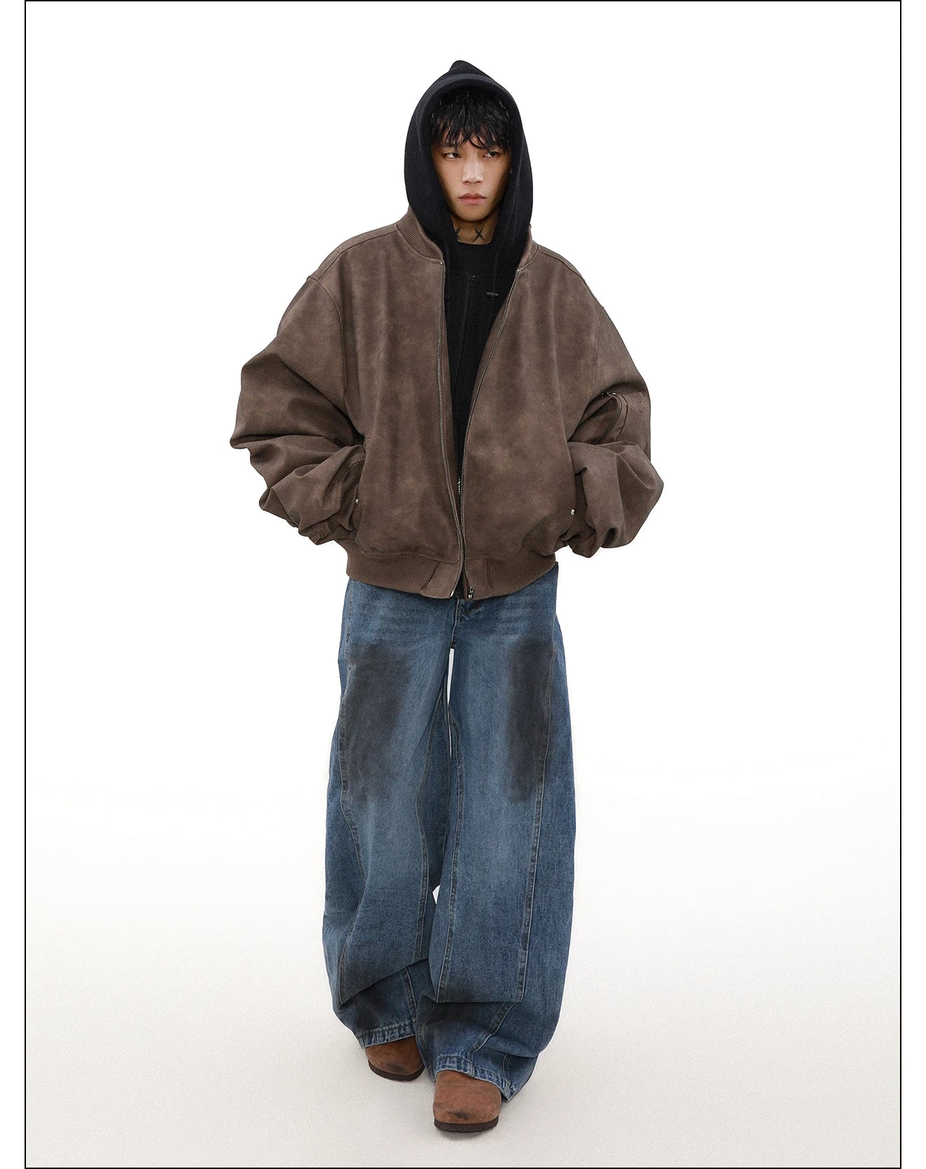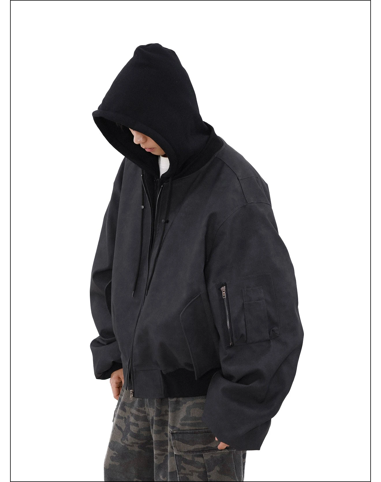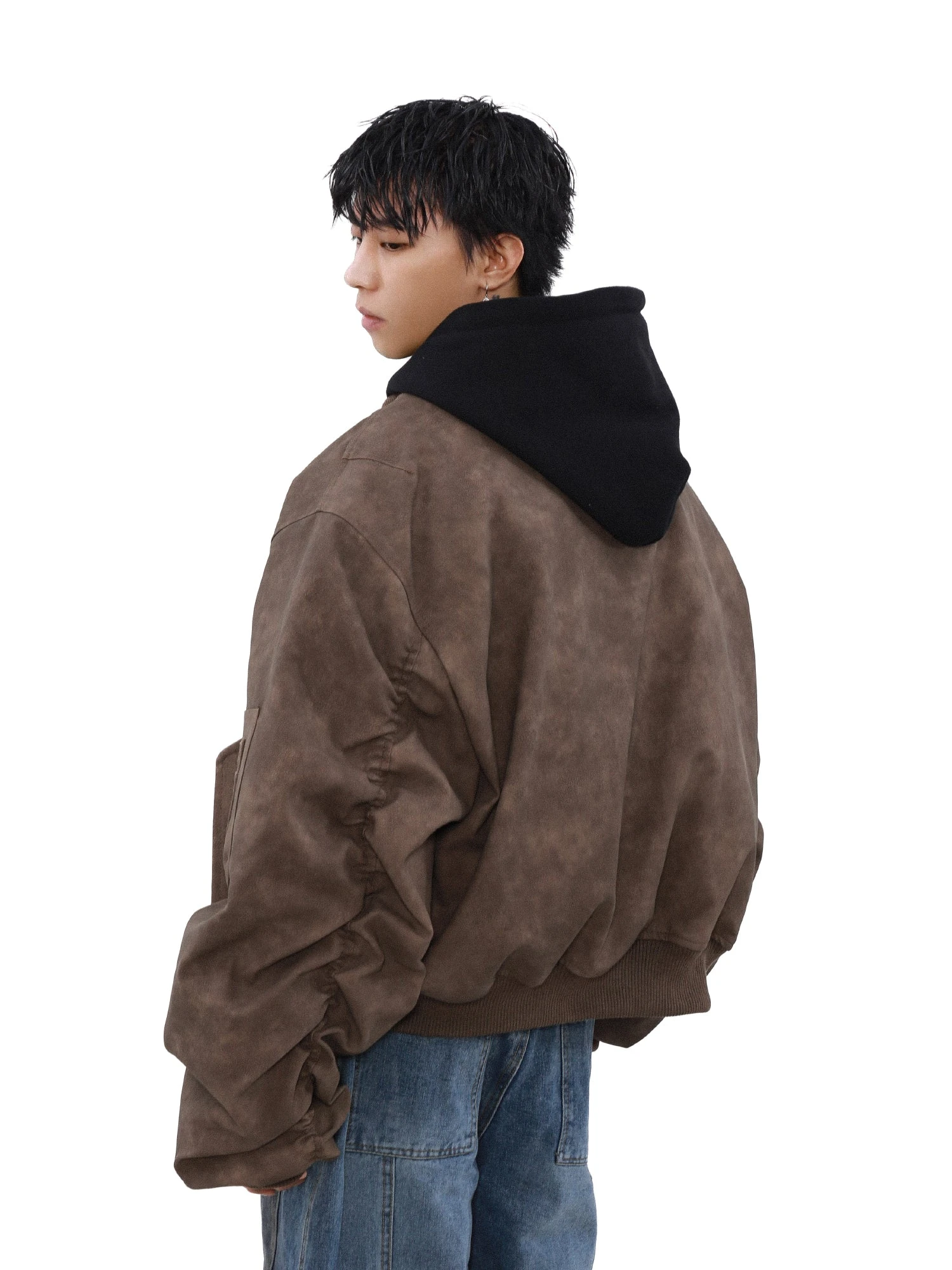 A refined take on classic military aesthetics, the MRNEARLY Vintage Faded Utility Bomber Jacket is crafted with a premium heavyweight cotton/poly fiber blend, offering a structured yet comfortable drape. The vintage-faded wash gives each piece a unique, timeworn character, while ribbed detailing at the collar, cuffs, and hem enhances both fit and durability. Functional elements include a front zip closure, multiple utility pockets with reinforced stitching, and a fully lined interior for added warmth and luxury. Designed for effortless layering, this piece seamlessly blends heritage style with contemporary streetwear appeal