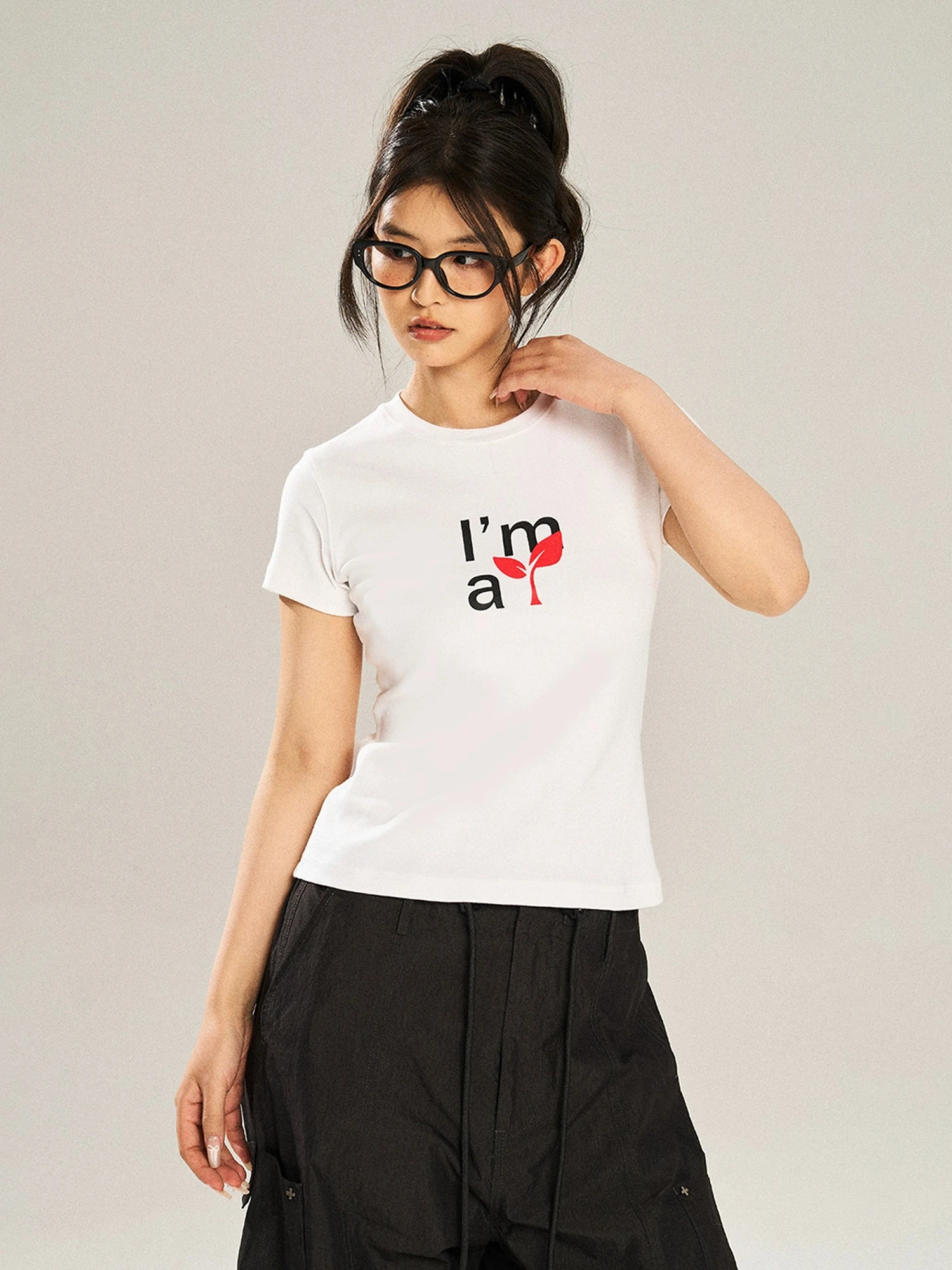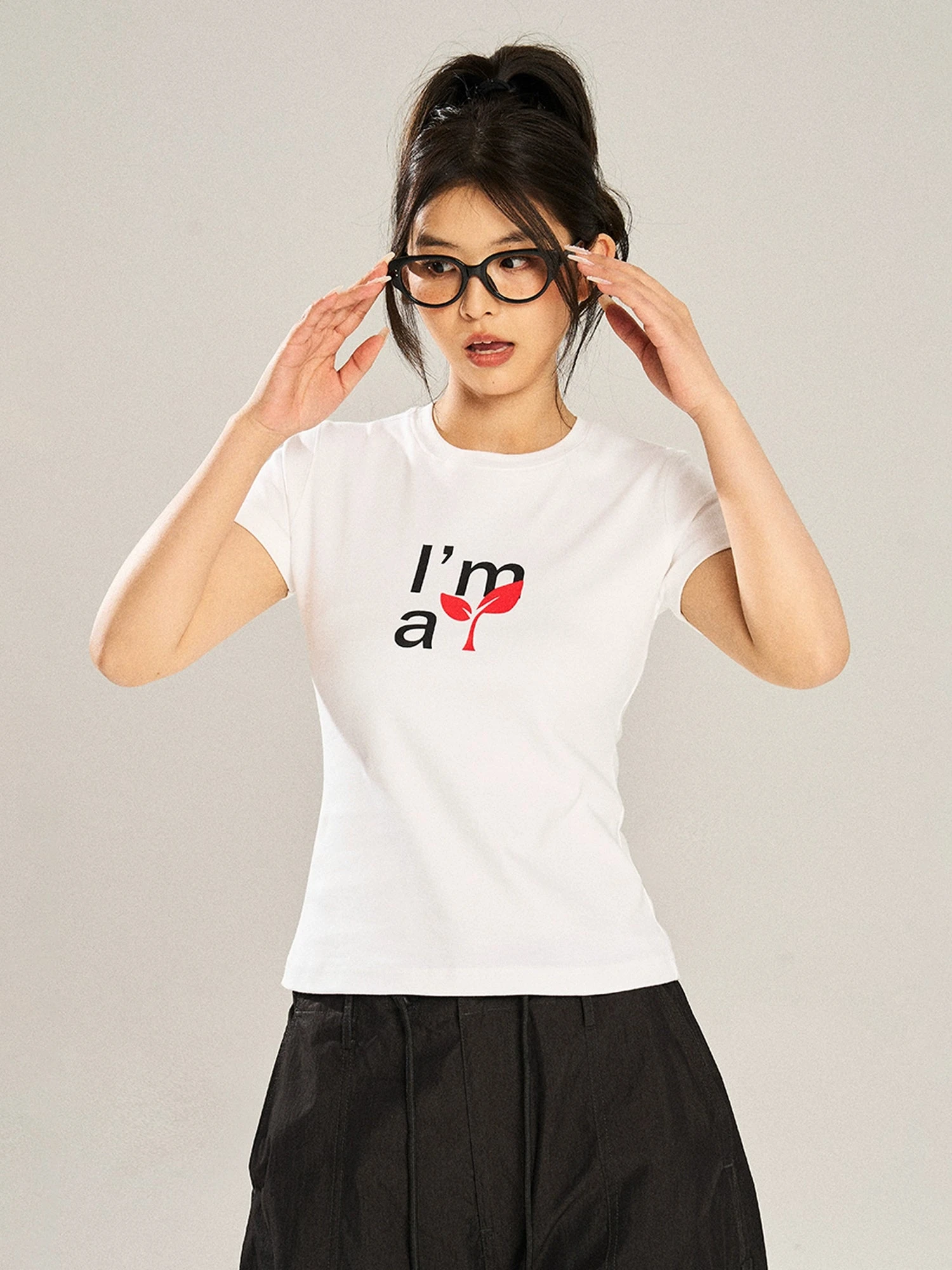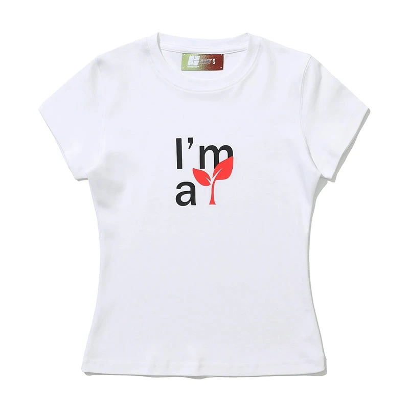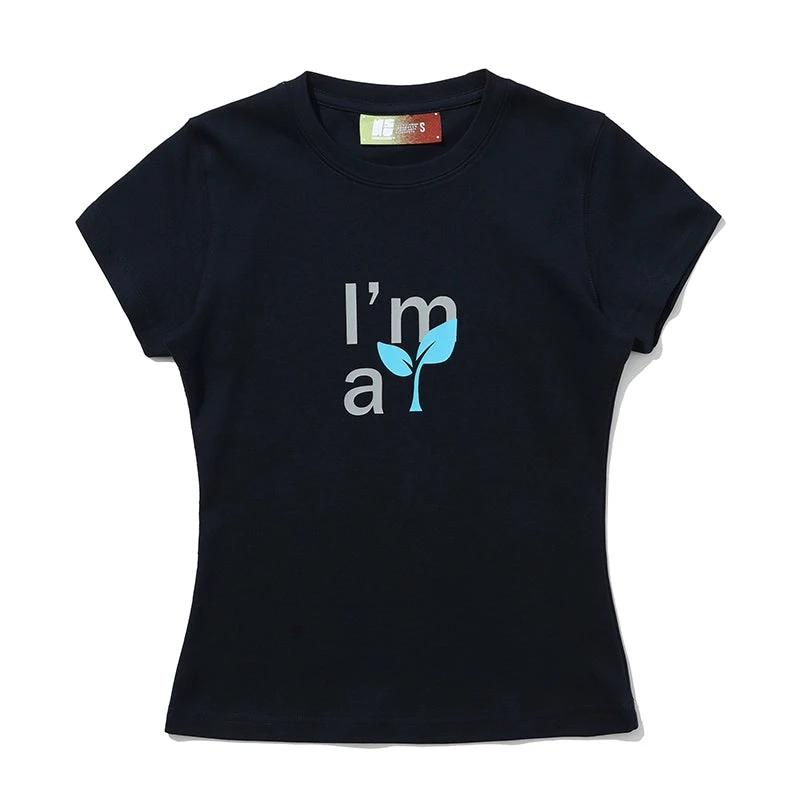 NSTNEW START cotton blend short sleeve shirt, rib knit crewneck/hem/cuffs, graphic printed at front.