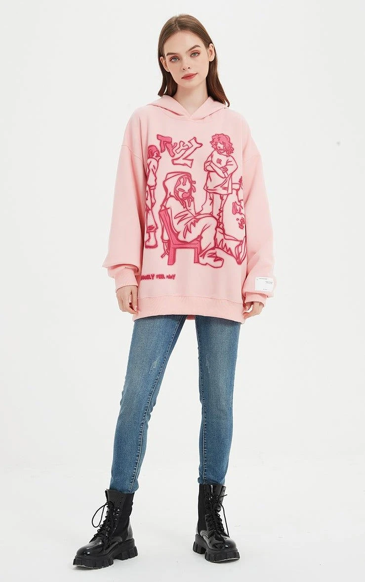 Cotton hoodie, tonal stitching, quality screen printing, relaxed fit, elastic hem and cuffs.