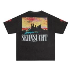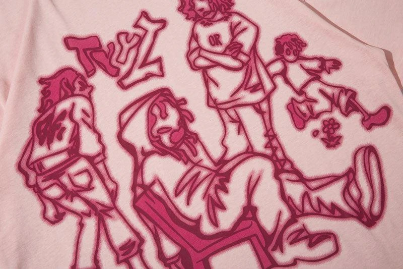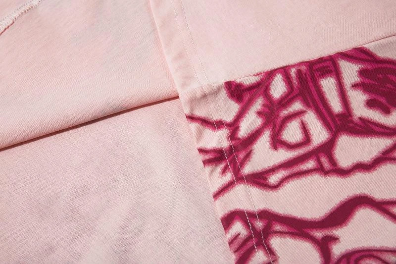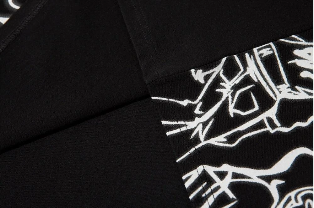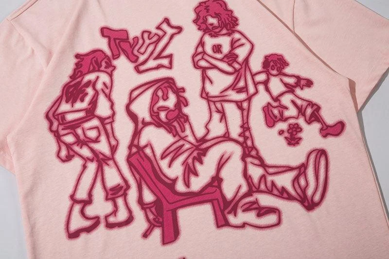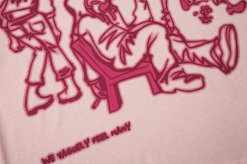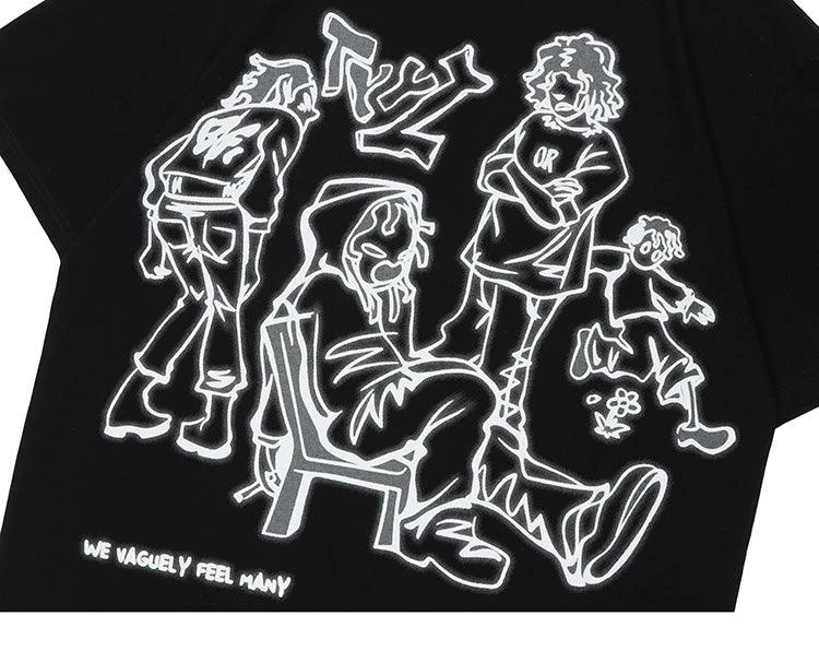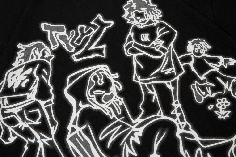 Cotton tee, straight/finished hem, tonal stitching, quality screen printing.