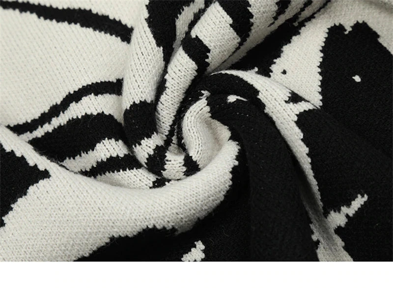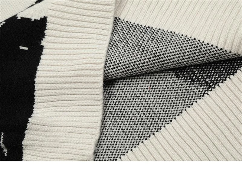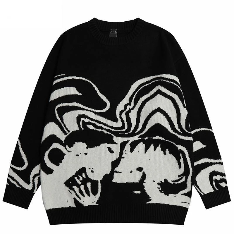 Cotton knit sweater, breathable, dense yet light, knit graphic on front, ribbed cuffs/hem/collar.