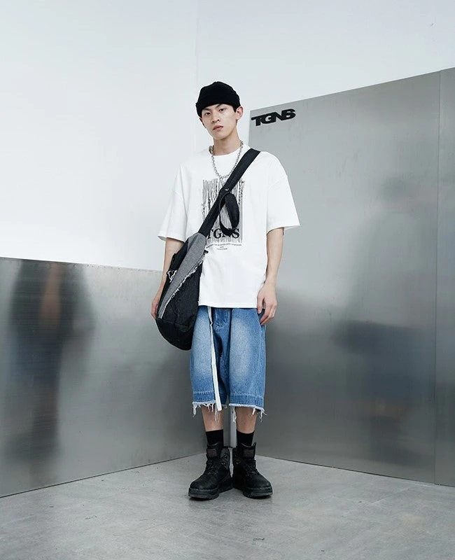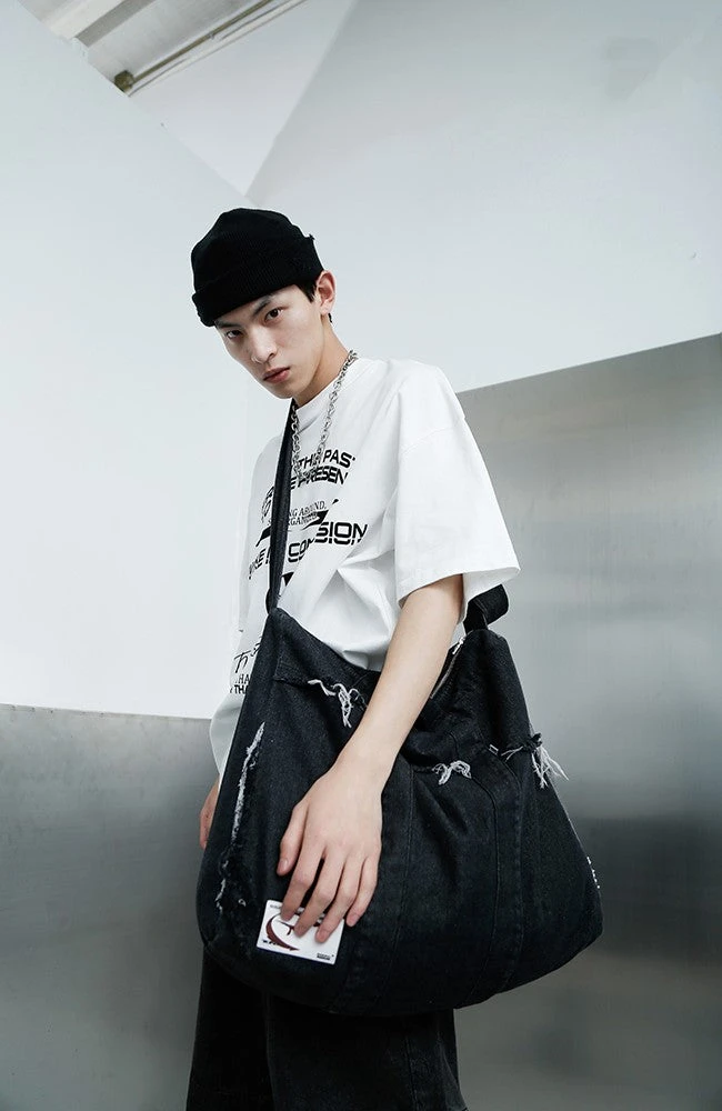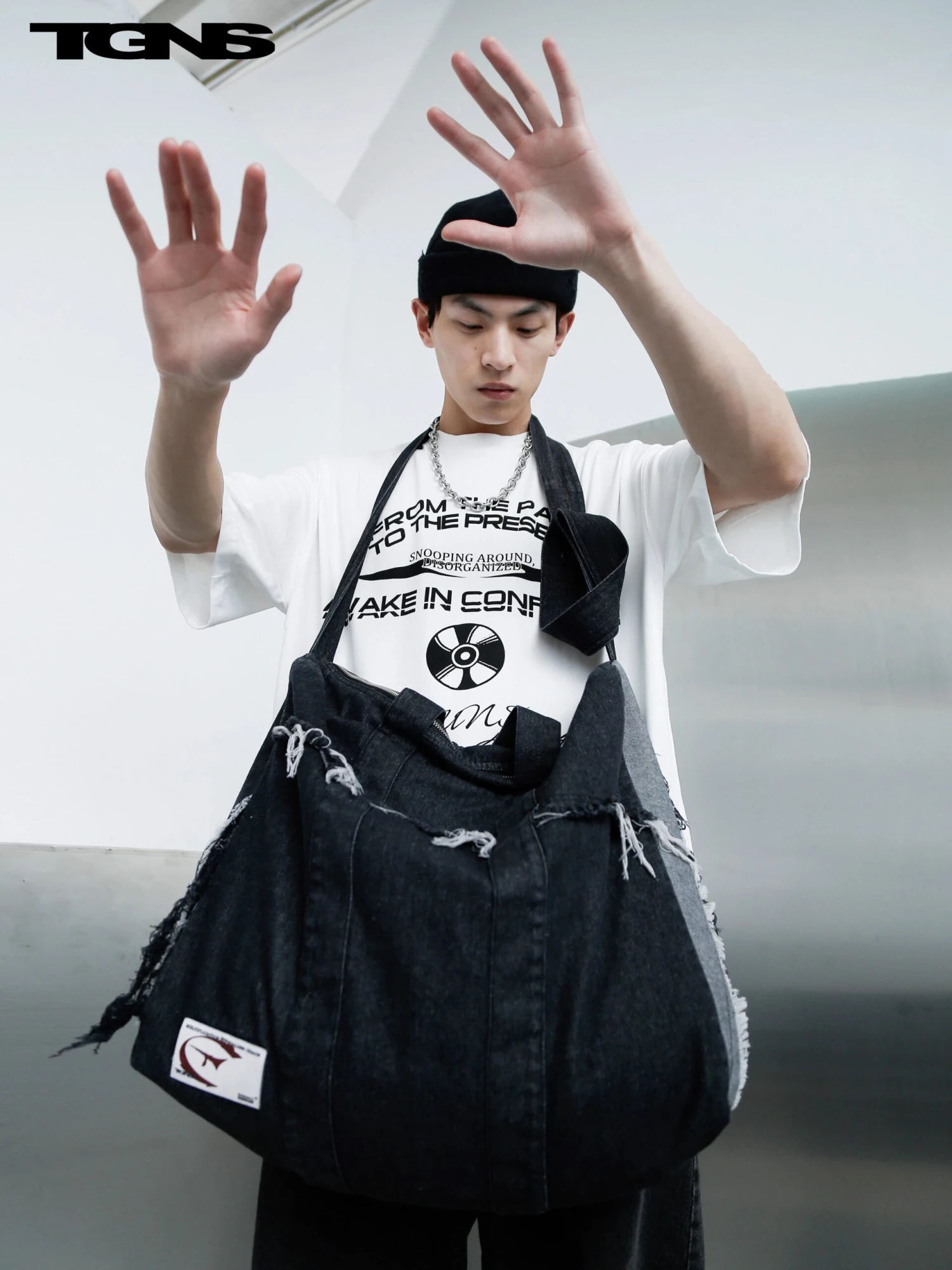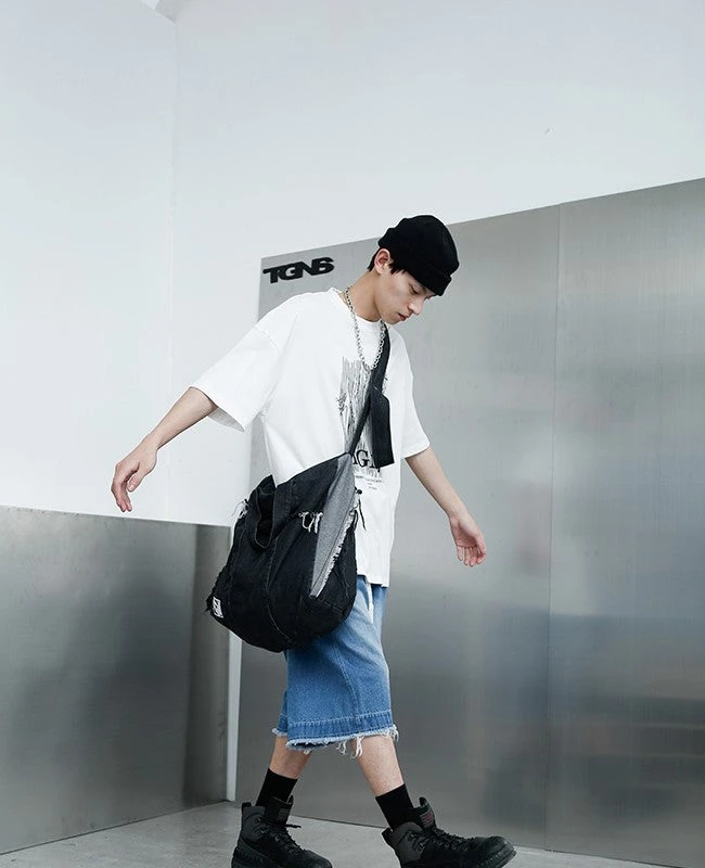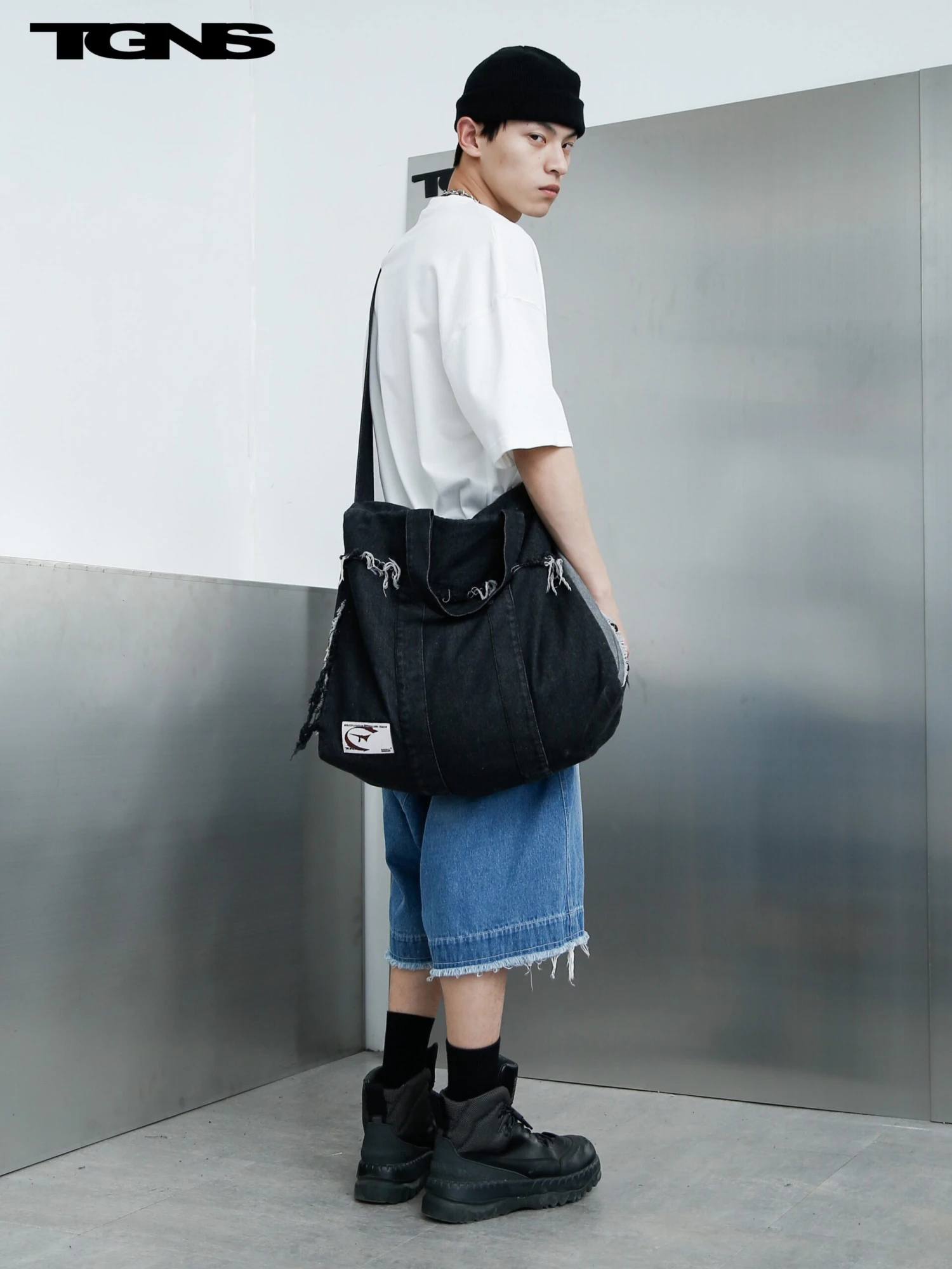TGNS Washed Denim Distressed Messenger Bag(Tgns Washed Denim Distressed Messenger Bag)